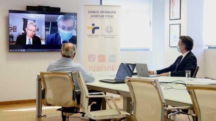 Τηλεδιάσκεψη πραγματοποιήθηκε σήμερα στον ΕΟΔΥ, μεταξύ του Αμερικανού πρέσβη Τζέφρι Πάιατ, του προέδρου του Εθνικού Οργανισμού Δημόσιας Υγείας (ΕΟΔΥ) Παναγιώτη Αρκουμανέα, του αντιπροέδρου Γιώργου Παναγιωτακόπουλου και του καθηγητή Σωτήρη Τσιόδρα. Σκοπός της διάσκεψης αυτής ήταν η ενημέρωση του Αμερικάνου πρέσβη για τις ενέργειες του ΕΟΔΥ αναφορικά με την πανδημία, όπως αναφέρει σε ανακοίνωση του ο ΕΟΔΥ.