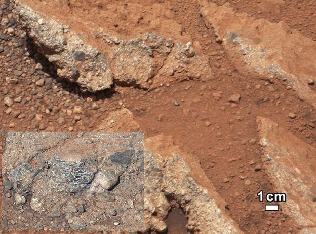 Βότσαλα στο ποτάμι: 16 ημέρες μετά τη προσγείωση, το Curiosity κατέγραψε τα βότσαλα ενός πανάρχαιου ποταμού, που έρεε από τους ηλικίας 4 δισεκατομμυρίων χρόνων λόφους, γύρω από το κρατήρα Gale.