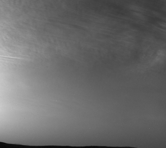 Το Curiosity χρησιμοποίησε τις ασπρόμαυρες κάμερες πλοήγησης για να τραβήξει φωτογραφίες από τα σύννεφα που βρίσκονταν σε ύψος περίπου 31 χιλιομέτρων πάνω από την επιφάνεια του Άρη στις 7 Μαΐου και 12 Μαΐου. Η NASA θεωρεί ότι πρόκειται για σύννεφα νερού-πάγου, το οποίο επιπλέουν στην ατμόσφαιρα του Άρη πρακτικά όλο το χρόνο.