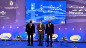 Στο πλαίσιο της παρουσίας του ο υπουργός Άμυνας συμμετείχε σε συζήτηση στρογγυλής τραπέζης με τους ομολόγους του από την Ελλάδα, την Πορτογαλία και τη Σλοβενία, με θέμα την ευρωπαϊκή αμυντική βιομηχανία. Ο κ. Πετρίδης εξέφρασε την άποψη ότι η ΕΕ πρέπει και οφείλει να ενεργεί ως αξιόπιστος πάροχος ασφάλειας και άμυνας, διασφαλίζοντας τα συμφέροντα και δικαιώματα των κρατών – μελών. «Η ΕΕ έχει αναλάβει δράσεις προς αυτή την κατεύθυνση. Οι πρωτοβουλίες της Ένωσης, που ακολούθησαν την Παγκόσμια Στρατηγική του 2016, η Μόνιμη Δομημένη Συνεργασία (PESCO), Συντονισμένη Ετήσια Επισκόπηση (CARD) και το Ευρωπαϊκό Ταμείο Άμυνας, αναμένεται να ενισχύσουν τόσο τις αμυντικές δυνατότητες της Ένωσης, όσο και τη συνεργασία μεταξύ των οικοσυστημάτων άμυνας των κρατών μελών» ανέφερε μεταξύ άλλων, τονίζοντας ότι αυτές οι πρωτοβουλίες τυγχάνουν της στήριξης και υποστήριξης της Κύπρου.