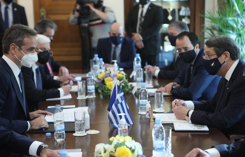 «Η λύση του Κυπριακού δεν μπορεί να αποκλίνει από τα ψηφίσματα του Συμβούλιου Ασφαλείας και τις ευρωπαϊκές αξίες», τόνισε ο Πρόεδρος της Κυπριακής Δημοκρατίας, Νίκος Αναστασιάδης, ξεκινώντας τις κοινές δηλώσεις που ακολούθησαν μετά τη συνάντησή του με τον Έλληνα πρωθυπουργό, Κυριάκο Μητσοτάκη στο προεδρικό Μέγαρο.