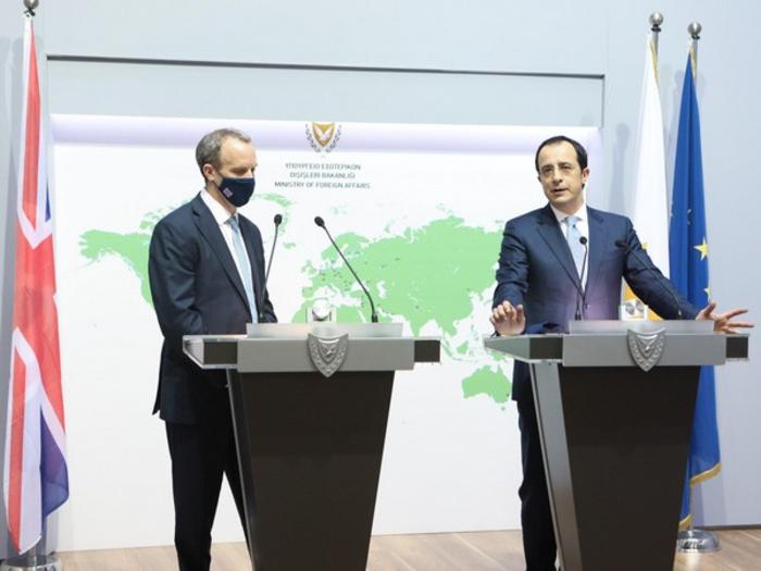 Η συνάντηση έγινε στα πλαίσια της επίσκεψης του Ντόμινικ Ράαμπ στην Κύπρο, την πρώτη Βρετανού υπουργού Εξωτερικών μετά το 2016. Παράλληλα, ο κ. Χριστοδουλίδης σημείωσε ότι οι διαπραγματεύσεις θα πρέπει να συνεχιστούν «βάσει του πλαισίου του γενικού γραμματέα των Ηνωμένων Εθνών, των συγκλίσεων που έχουν επιτευχθεί και του Κοινού Ανακοινωθέντος του Φεβρουαρίου 2014, εκφράζοντας ταυτόχρονα την ελπίδα ότι το ίδιο επίπεδο δέσμευσης θα επιδειχθεί από όλους τους εμπλεκόμενους».