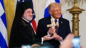 Ο Αρχιεπίσκοπος Αμερικής συνεχάρη εκ μέρους της ελληνοαμερικανικής κοινότητας τον πρόεδρο Τραμπ για την επανεκλογή του, εκφράζοντας ευγνωμοσύνη για αυτή την παράδοση στον Λευκό Οίκο που αναγνωρίζει τις ελληνικές ρίζες της δημοκρατίας.