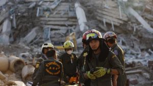 Στην Μπανγκόκ, σε απόσταση 1.000 χιλιομέτρων από το επίκεντρο, μία αποστολή διάσωσης ενέτεινε σήμερα τις προσπάθειές της να βρει εργάτες που εγκλωβίστηκαν κάτω από τα ερείπια ενός 33ώροφου πύργου που κατέρρευσε.