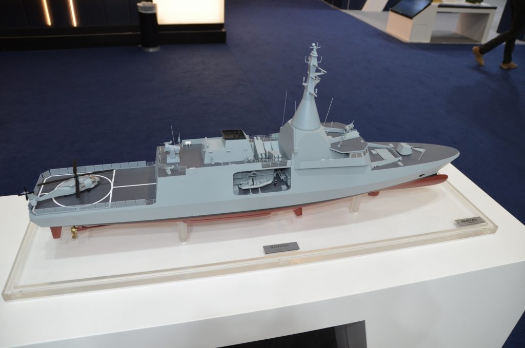 Μέχρι τότε λοιπόν, κοιτάμε μακέτες. Στο δικό της περίπτερο η Naval είχε την FDI HN και την Gowind HN, στις γνωστές διαμορφώσεις τους, η μακέτα της FDI δικαίως έφερε ελληνική σημαία και είχε και ένα ελικόπτερο Romeo επάνω. H Fincantieri έφερε μακέτα πιο «γενικής» φύσεως, αλλά σημειολογικά είχε το περίπτερο της πολύ κοντά με εκείνο της Onex, τονίζοντας τη συνεργασία των δύο ομίλων.