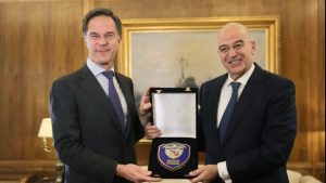 Defence Minister Nikos Dendias met on Tuesday with visiting NATO Secretary General Mark Rutte at the defence ministry in Athens.