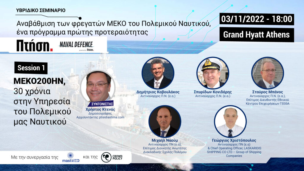 Ξεκινήσαμε! Δείτε ζωντανά από το συνέδριο MAST MED 2022 το webinar της ΠΤΗΣΗΣ, του ptisidiastima.com και του navaldefence.gr για τον εκσυγχρονισμό των φρεγατών MEKO 200 του Πολεμικού μας Ναυτικού. Δείτε στη σελίδα μας στο Youtube.