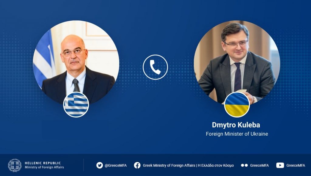 Τηλεφωνική επικοινωνία με τον Ουκρανό υπουργό Εξωτερικών Ντμίτρο Κουλέμπα, κατόπιν πρωτοβουλίας του, πραγματοποίησε ο υπουργός Εξωτερικών Νίκος Δένδιας.