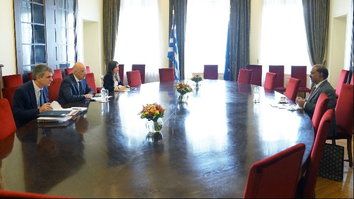 Συνάντηση με το νέο πρέσβη της Ινδίας στην Ελλάδα Αμρίτ Λουγκούν (Amrit Lugun) πραγματοποίησε νωρίτερα σήμερα ο υπουργός Εξωτερικών Νίκος Δένδιας.