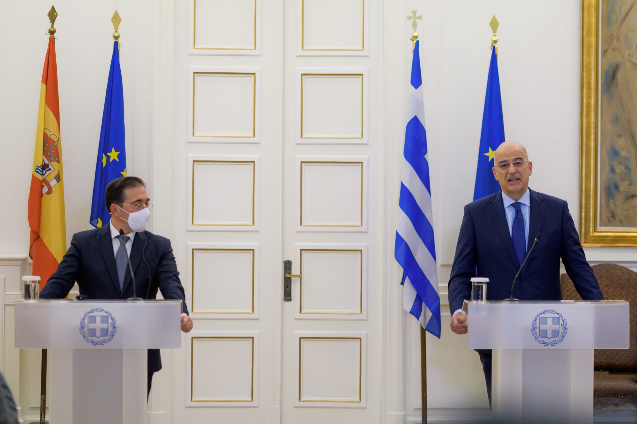 Ο υπουργός Εξωτερικών σημείωσε ακόμα ότι «η Ελλάδα προσβλέπει στην ενίσχυση της συνεργασίας της πολυμερώς και διμερώς και στο πλαίσιο της ευρωπαϊκής αλληλεγγύης και σε όλα τα θέματα που απασχολούν και τις δύο χώρες, και εμείς έχουμε υποχρέωση να σταθούμε δίπλα στην Ισπανία σε όποιες προκλήσεις αντιμετωπίζει». Και πρόσθεσε ότι «η ευρωπαϊκή αλληλεγγύη δεν είναι α λα καρτ, ο ένας πρέπει να είναι δίπλα στον άλλο».