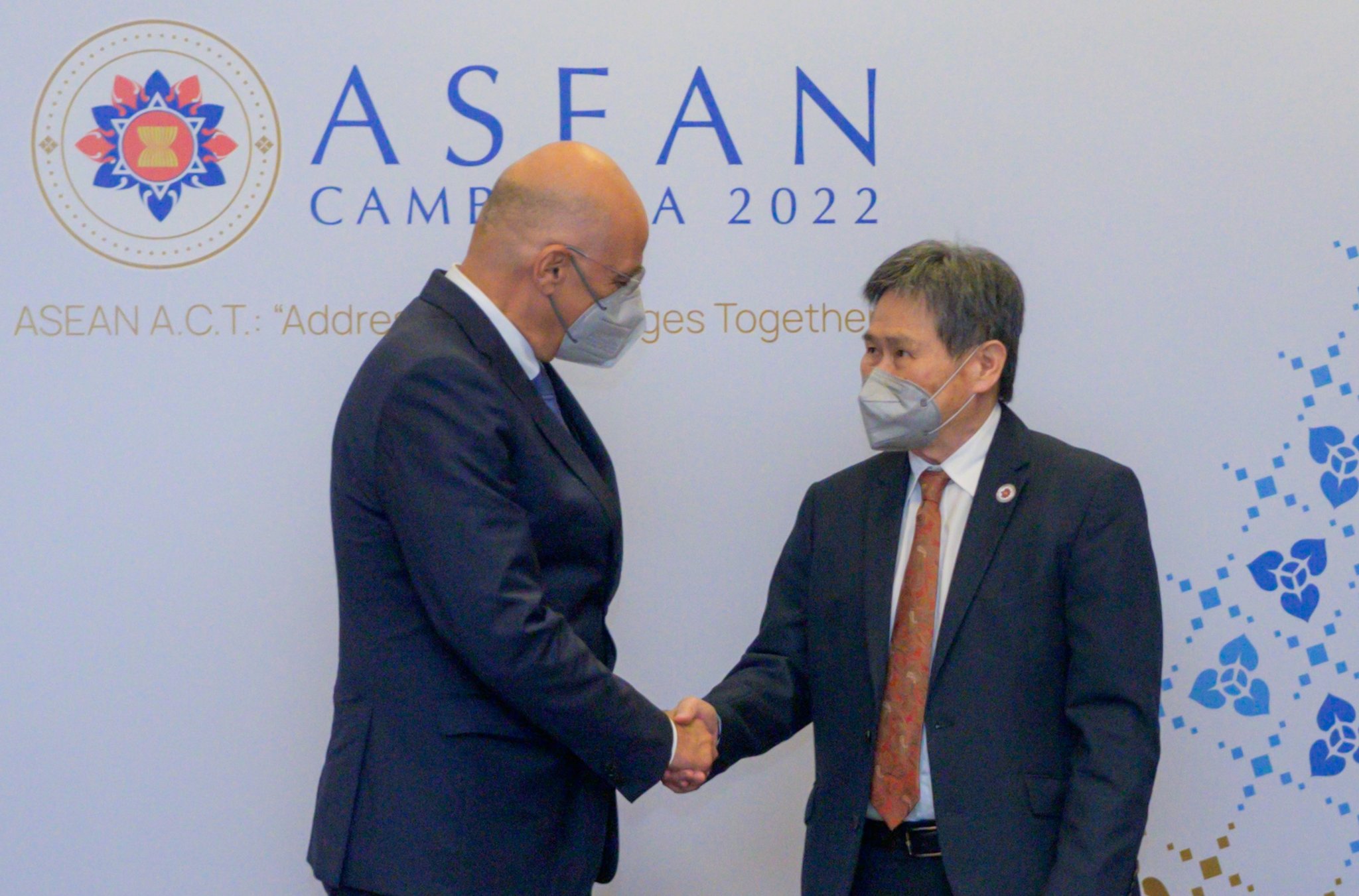 Επιπλέον, ο υπουργός Εξωτερικών συναντήθηκε με τον ομόλογό του της Καμπότζης Πρακ Σοκχόν (Prak Sokhonn), τον οποίο συνεχάρη για την προεδρία ASEAN. Επίσης, συζήτησαν για τη διμερή συνεργασία και σε διεθνείς οργανισμούς και για τις εξελίξεις στη Μιανμάρ. Οι απόψεις μεταξύ Ελλάδας και Καμπότζης σε θέματα Διεθνούς Δικαίου ταυτίζονται σε πολλά ζητήματα, υπογράμμισε ο Νίκος Δένδιας σε ανάρτησή του σε μέσο κοινωνικής δικτύωσης.