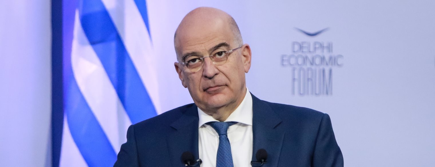 Εστιάζοντας στην Ανατολική Μεσόγειο, με έμφαση στις προκλήσεις και τα διακυβεύματα που αντιμετωπίζει, όχι μόνο για την ελληνική εξωτερική πολιτική, αλλά και για τη σταθερότητα της περιοχής, ανέφερε πως είναι ένα μέρος στο οποίο οι καταστάσεις σταθερότητας και ασφάλειας, ακόμη και καταστάσεις απειλής της ειρήνης, έχουν έναν κοινό παρονομαστή: την Τουρκία. Ειδικότερα, σημείωσε πως η Τουρκία παίζει ένα πολύ επικίνδυνο παιχνίδι στην Ανατολική Μεσόγειο, αναφερόμενος μεταξύ άλλων στην παραβίαση της κυριαρχίας και των κυριαρχικών δικαιωμάτων της Ελλάδας και της Κύπρου, στην επιδίωξη του νεο-οθωμανικού οράματος με το όνομα Γαλάζια Πατρίδα, στην εισβολή της στη Συρία, το Ιράκ, τη Λιβύη, στο Κυπριακό, στην απειλή πολέμου αν η χώρα μας ασκήσει τα δικαιώματά της που απορρέουν από το Διεθνές Δίκαιο της Θάλασσας και επεκτείνει τα χωρικά της ύδατα στο Αιγαίο, στην εργαλειοποίηση του μεταναστευτικού, στο παράνομο τουρκο-λιβυκό μνημόνιο και στη χειραγώγηση μειονοτήτων. Σε αυτό το πλαίσιο, ο υπουργός Εξωτερικών υπογράμμισε πως «αυτή η τουρκική προσπάθεια να αντικαταστήσει τη νομιμότητα με την παρανομία σε όλη την Ανατολική Μεσόγειο, αποτελεί την κύρια πρόκληση για την ελληνική εξωτερική πολιτική».