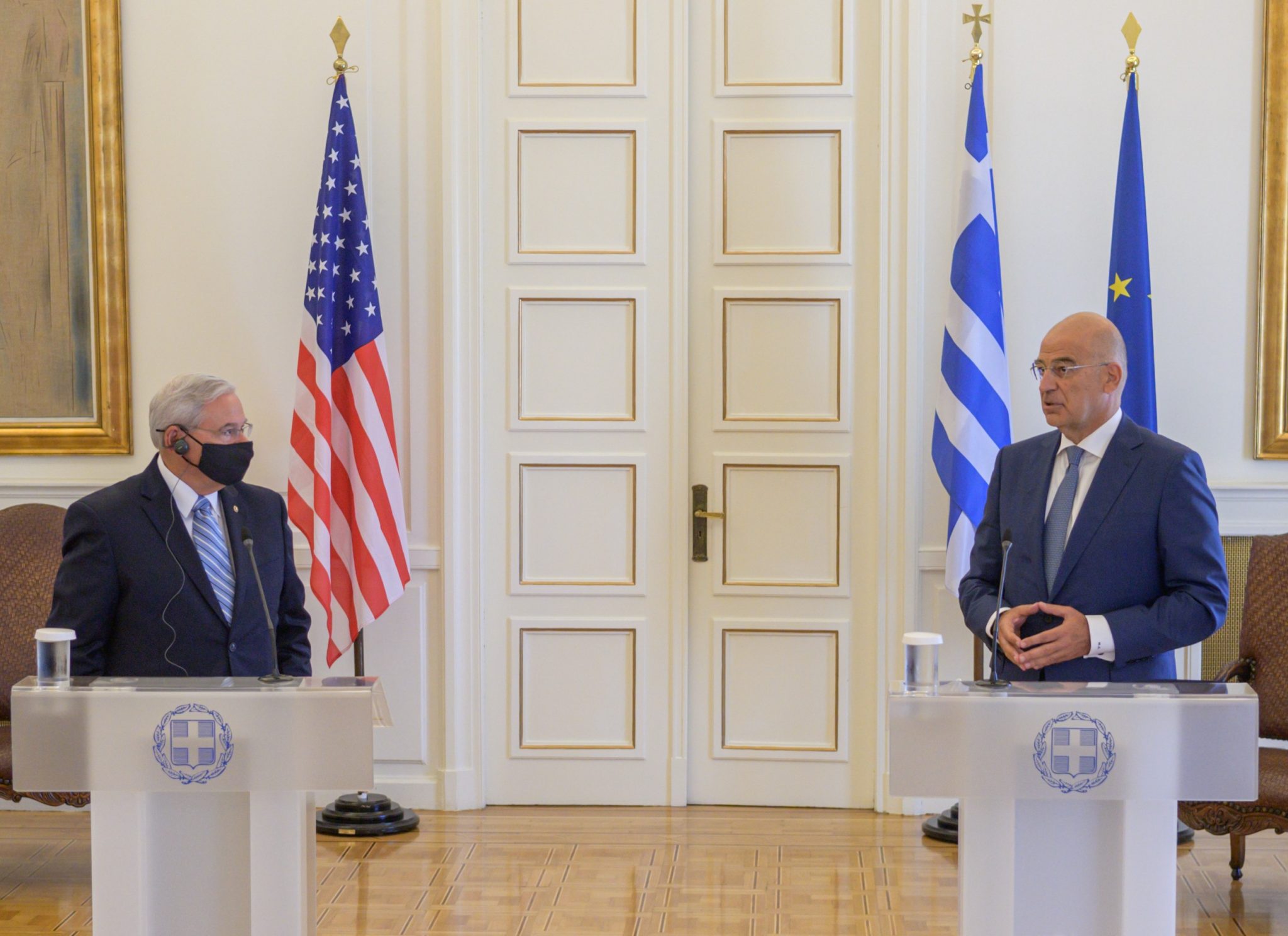 Το εξαιρετικό επίπεδο των διμερών σχέσεων μεταξύ Ελλάδος και ΗΠΑ υπογράμμισαν σε κοινές δηλώσεις τους μετά τη συνάντησή τους ο υπουργός Εξωτερικών Νίκος Δένδιας και ο Αμερικανός Γερουσιαστής και πρόεδρος της Επιτροπής Εξωτερικών Σχέσεων της Γερουσίας των ΗΠΑ Ρόμπερτ Μενέντεζ.