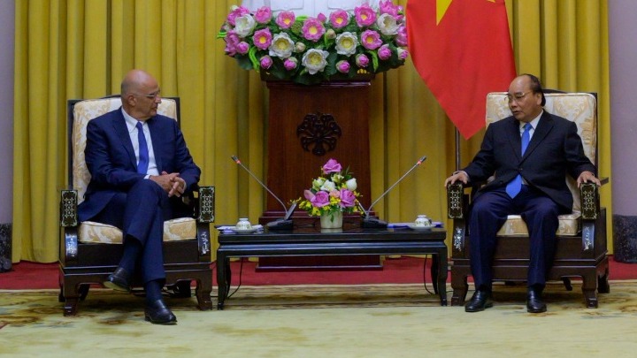 Δεκτός από τον Πρόεδρο του Βιετνάμ, Νγκουγιέν Σουάν Φουκ (Ngyen Xuan Phuc) και τον πρωθυπουργό της χώρας Φαμ Μιν Τσιν (Pham Minh Chinh) έγινε ο υπουργός Εξωτερικών Νίκος Δένδιας, στο πλαίσιο της επίσκεψής του στο Ανόι. Νωρίτερα, είχε συνομιλίες με τον Βιετναμέζο ομόλογό του Μπουί Θαν Σον (Bui Thanh Son). Η εν λόγω επίσκεψη έπεται της επίσκεψης της αντιπροέδρου του Βιετνάμ στην Αθήνα, Βο Θι Σουάν (Vo Thi Anh Xuan),τον περασμένο Νοέμβρι, καθώς και της Προέδρου της Ελλάδας Κατερίνας Σακελλαροπούλου στο Ανόι τον περασμένο Μάιο.