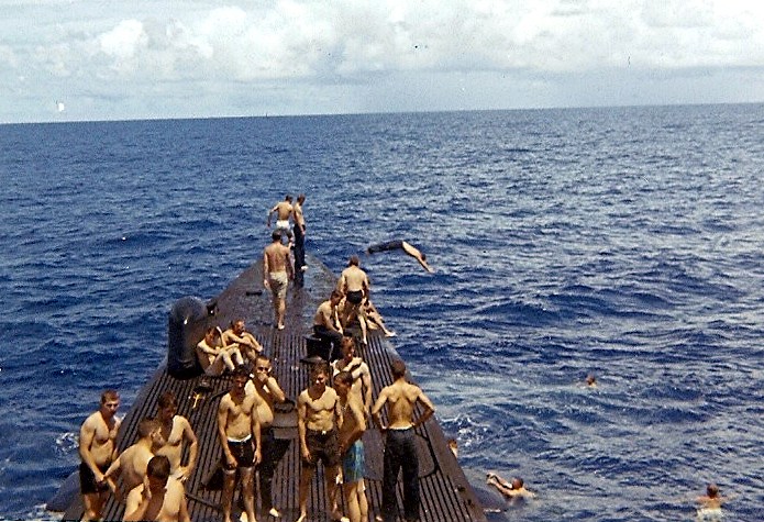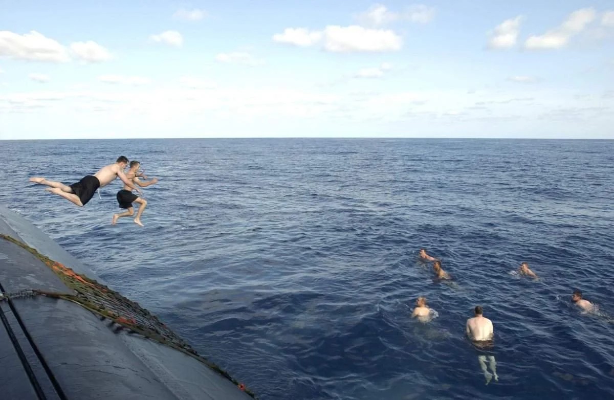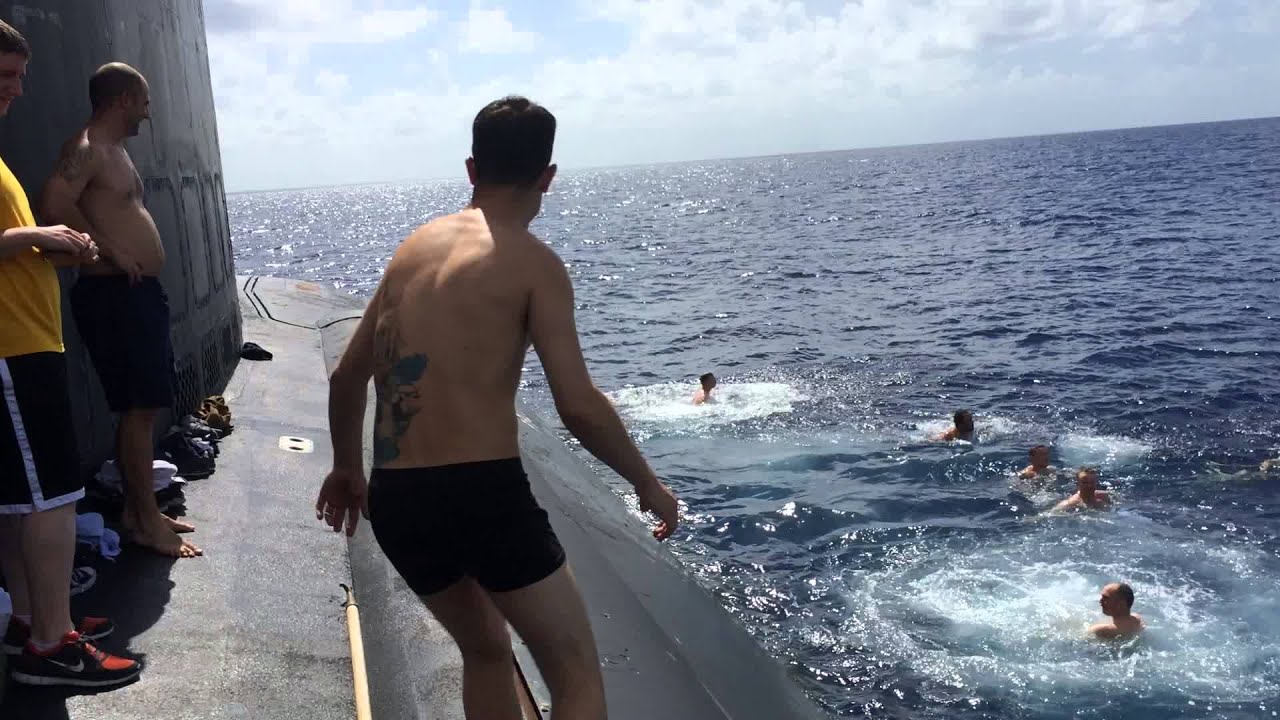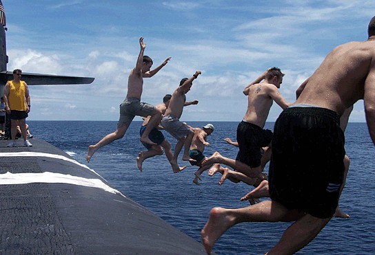 Παράδοση στον κόσμο των υποβρυχίων, αν και δεν γίνεται συχνά, είναι, τι άλλο, μια ωραία βουτιά από το σκάφος στην απέραντη θάλασσα. Η ανάπαυλα για τα πληρώματα που ζουν εβδομάδες στον μικροσκοπικό χώρο ενός υποβρυχίου είναι καλοδεχούμενη και συνδυάζεται με ηλιοθεραπεία, φαγητό και γενική ευθυμία. Καμμιά φορά βέβαια χρειάζεται να είναι κάποιος σε επιφυλακή με ένα όπλο μήπως εμφανιστεί καρχαρίας, αλλά αυτά είναι δευτερεύοντα!