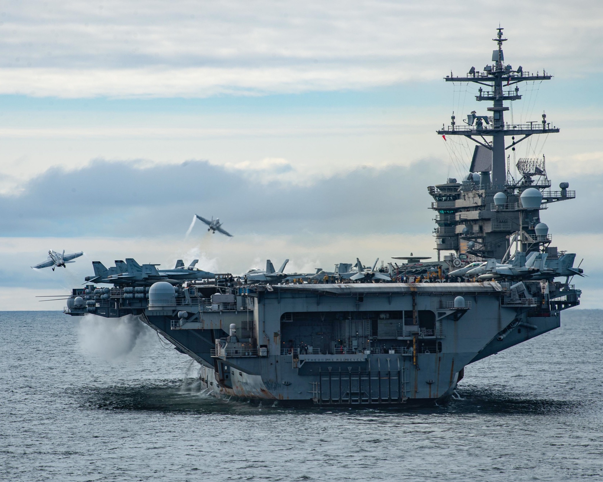 Διπλή απονήωση F/A-18 Super Hornet της  Carrier Air Wing (CVW) 11 από το USS Theodore Roosevelt, στις 29 Απριλίου 2021. Μικρή αλλά σημαντική λεπτομέρεια είναι ότι το αεροπλανοφόρο πλέει με ελάχιστη ταχύτητα, κάτι που δίνει απάντηση στο συνηθισμένο ερώτημα εάν ένα «flattop» (CATOBAR φυσικά) μπορεί να απονηώσει αεροπλάνα από στάση. Μια εξαιρετική ανάλυση για επιχειρήσεις από αμερικανικά αεροπλανοφόρα του συνεργάτη μας Ιωάννη Λέκκα είχε εμφανιστεί σε δυοπ συνέχειες, σε πρόσφατα τεύχη μας.  (US Navy, Petty Officer 3rd Class Erik Melgar)