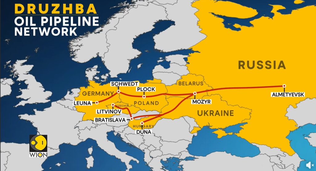 Ο αγωγός Druzhba (Φιλία), που είναι ένα από τα πιο περίπλοκα ζητήματα του ρωσο-ουκρανικού πολέμου, επαναλειτούργησε πλήρως από τις 22 Απριλίου 2026. Έτσι μέσω αυτού (του νότιου κλάδου του), ρωσικό πετρέλαιο ρέει ξανά μέσω ουκρανικού εδάφους προς Ουγγαρία και Σλοβακία – δύο χώρες του ΝΑΤΟ που εξαρτώνται από αυτόν για την ενεργειακή τους ασφάλεια.