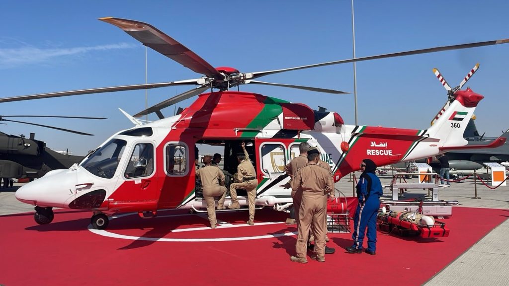 Η ΠΤΗΣΗ βρέθηκε στο Dubai Air Show 2023 όπου ένα έκθεμα με ιδιαίτερο ενδιαφέρον ήταν το ελικόπτερο AW-139 SAR (έρευνας-διάσωσης) των ΗΑΕ, το οποίο όμως κάνει και μεταφορά υψηλών προσώπων (VIP).