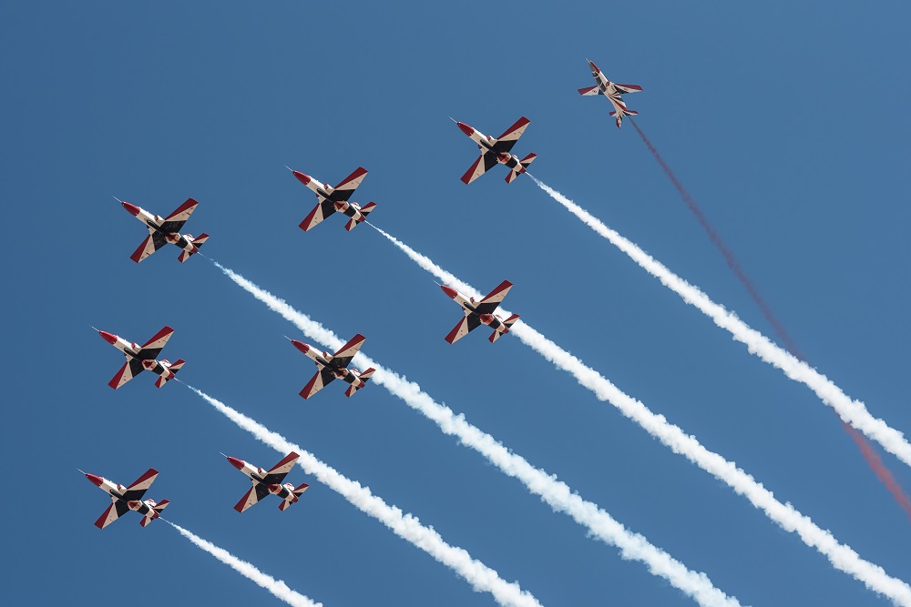 Το Σμήνος μετέχει στους εορτασμούς της ΠΑ και θα επαναλάβει την επίδειξή του αύριο, καθώς σήμερα ήταν η δοκιμαστική πτήση.