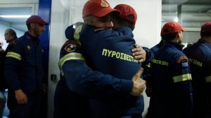Με λουλούδια στα χέρια και με ανοιχτές αγκαλιές υποδέχτηκαν, λίγο μετά τα μεσάνυχτα, στο αεροδρόμιο «Μακεδονία» στη Θεσσαλονίκη, συνάδελφοι τους, τους δεκαπέντε άνδρες της ΕΜΑΚ και μαζί τους τον γιατρό και τους δύο διασώστες του ΕΚΑΒ, που πήραν μέρος σε διασώσεις σεισμόπληκτων στην Τουρκία.