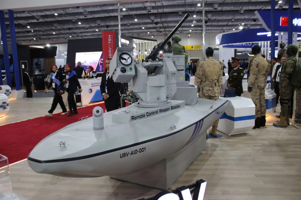 Ταχύτερα δείχνει να κινείται η έρευνα για μη επανδρωμένα με την εμπλοκή της εγχώριας βιομηχανίας. Στην αμυντική έκθεση EDEX 2025, η εταιρεία Arab International Optronics παρουσίασε το USV-AIO-001, ένα σκάφος επιφανείας που εξοπλίζεται με τον τηλεχειριζόμενο σταθμό οπλισμού Eagle-2, που παράγεται στην Αίγυπτο με τη συνεργασία της ισπανικής Escribano. Συστήματα σαν αυτό προορίζονται για φύλαξη προσβάσεων σε λιμένες, πλωτές εγκαταστάσεις offshore και θαλασσίους διαδρόμους όπως οι προσβάσεις προς το Σουέζ με ελάχιστη εμπλοκή προσωπικού ενώ θα μένουν εκτεθειμένα στα δύσκολα στοιχεία της φύσης και σε περιβάλλον κορεσμένο από drones.