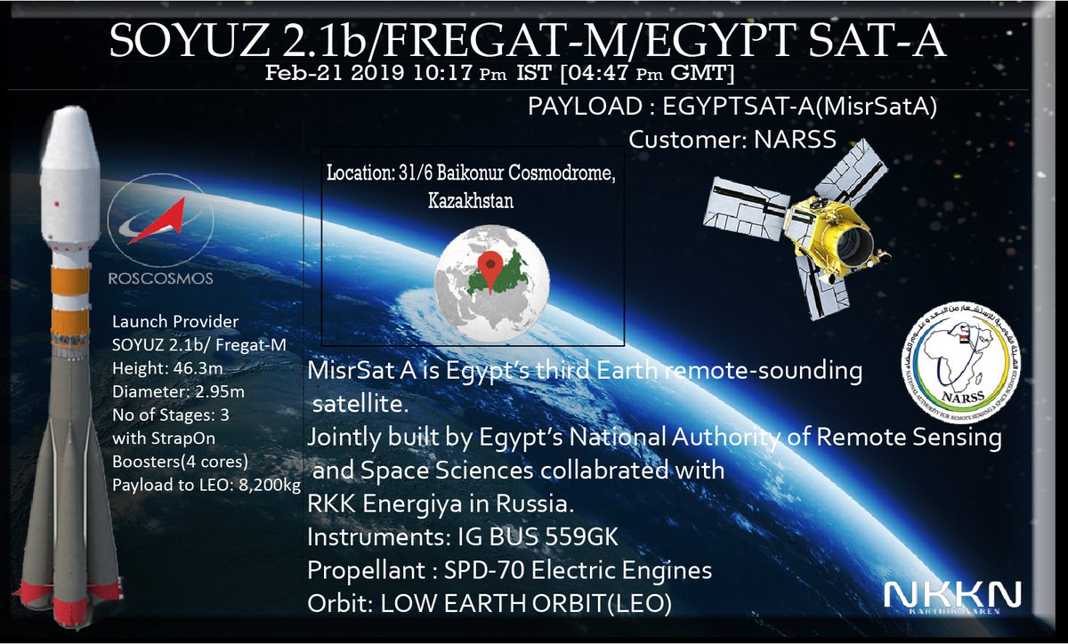 Στις 21 Φεβρουαρίου 2019 έγινε τελικά η εκτόξευση του νέου αιγυπτιακού δορυφόρου επιτήρησης EgyptSat-A, με χρήση πυραύλου Soyuz από το Κοσμοδρόμιο του Μπαϊκονούρ.