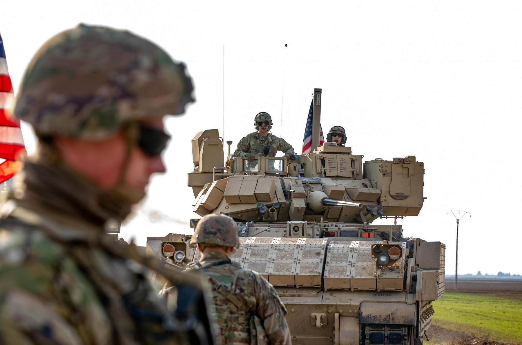 U.S. Army Soldiers, inside an M2A2 Bradley assigned to Charlie Company, 2nd Battalion, 116th Cavalry Regiment, Idaho National Guard, Combined Joint Task Force – Operation Inherent Resolve, maneuvers into position during a patrol, Syria, Jan. 26, 2023. (U.S. Army photo by Sgt. Julio Hernandez)