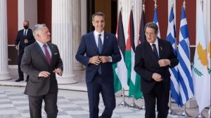 «Η σημερινή Σύνοδος Κορυφής αντανακλά την δέσμευση των χωρών μας για την προώθηση της ειρήνης, της σταθερότητας και της ευημερίας στην ευρύτερη περιοχή. Θα μας δώσει τη δυνατότητα να ανοίξουμε τον δρόμο για έναν ταχύτερο συντονισμό των δράσεών μας προς όφελος των λαών μας και προς όφελος της ευρύτερης περιοχής», ανέφερε ο Κυριάκος Μητσοτάκης στην εισαγωγική του τοποθέτηση στην τριμερή Σύνοδο Κορυφής Ελλάδας-Κύπρου-Ιορδανίας στο Ζάππειο Μέγαρο.