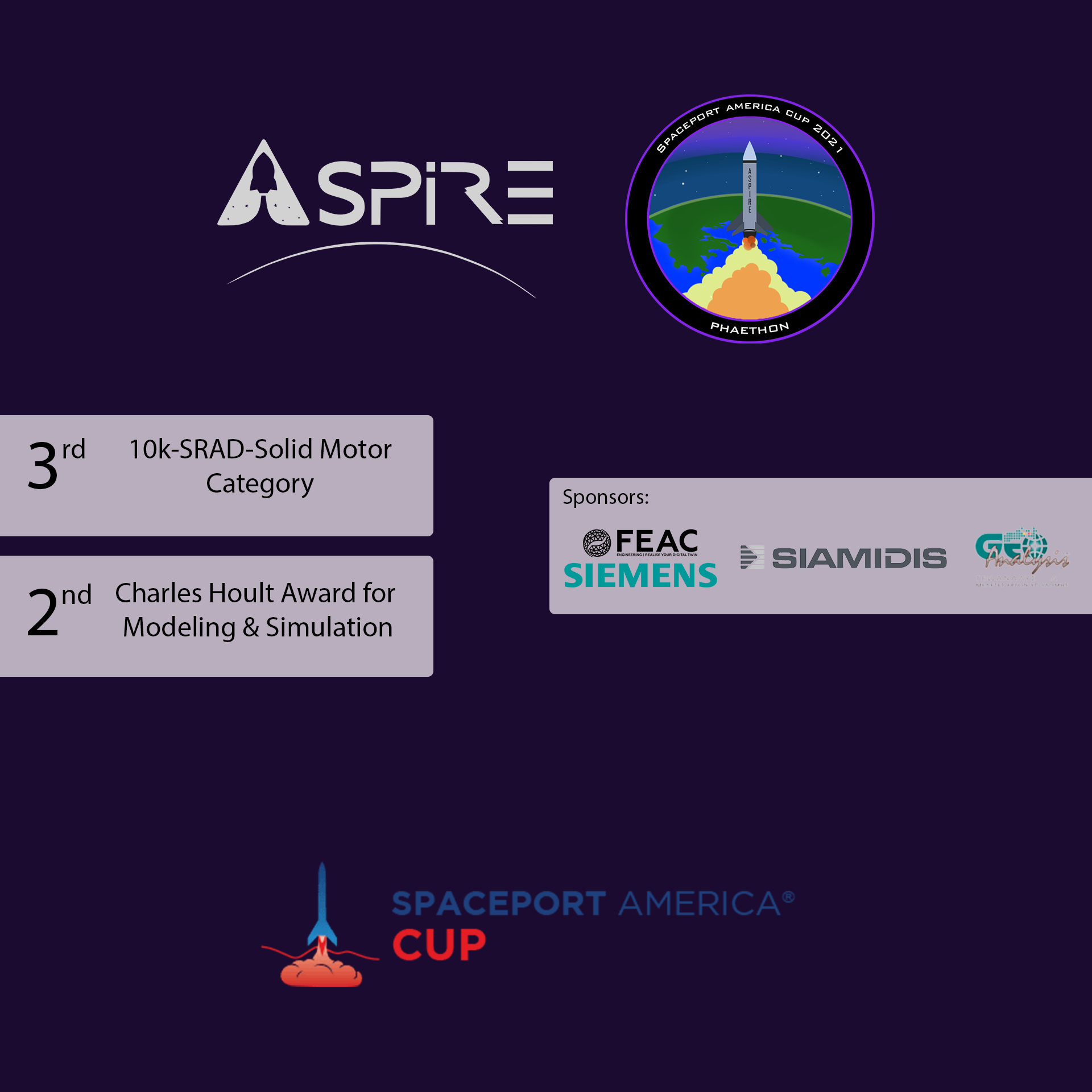 Για το γεγονός ότι η φοιτητική ομάδα αεροδιαστημικής σχεδίασε και κατασκεύασε με δικά της υλικά και τεχνογνωσία τον κινητήρα στερεών καυσίμων που μπορεί να ανεβάσει τον πύραυλο στα 10.000 πόδια (κατηγορία SRAD 10k Solid Motor), οι διοργανωτές τους βράβευσαν, δίνοντάς τους την 3η θέση στη γενική κατάταξη, αμέσως μετά το State University of New York at Buffalo και το George Washington University.