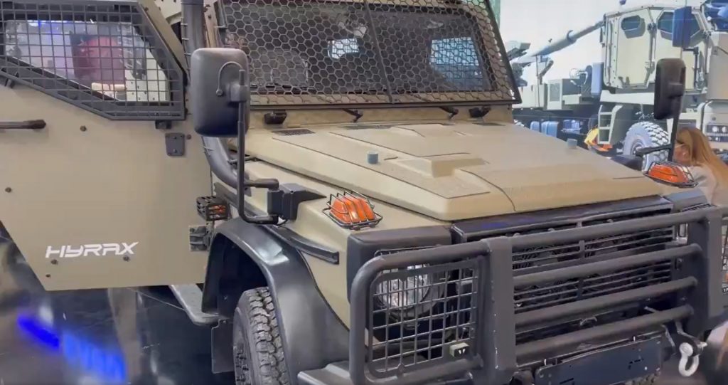 Η ισραηλινή SK Group και η ΕΛΒΟ παρουσιάζουν στην έκθεση οπλικών συστημάτων DEFEA το στρατιωτικό όχημα Hyrax. Στη θωράκιση του Hyrax εμπλέκεται η επίσης ισραηλινή εταιρεία Plasan.