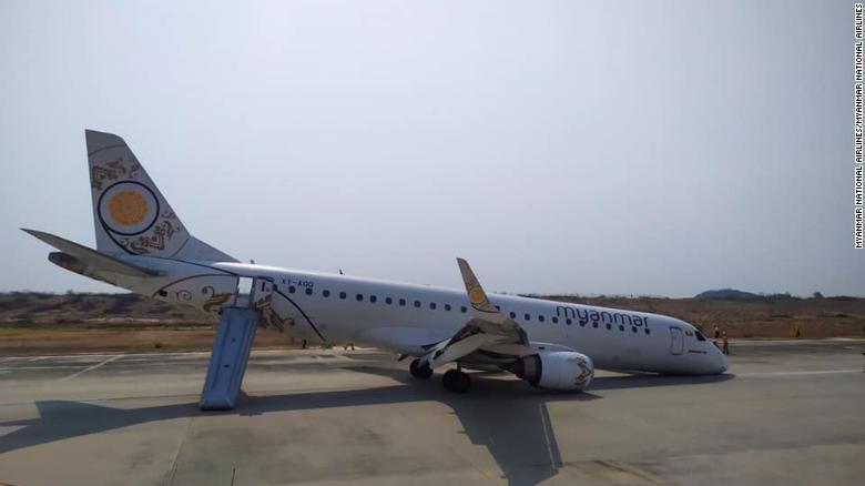Επιβατηγό αεροπλάνο Embraer 190 της εταιρείας Myanmar National Airlines κατόρθωσε να προσγειωθεί στο αεροδρόμιο Mandalay της Μιανμάρ χωρίς τους μπροστινούς τροχούς.