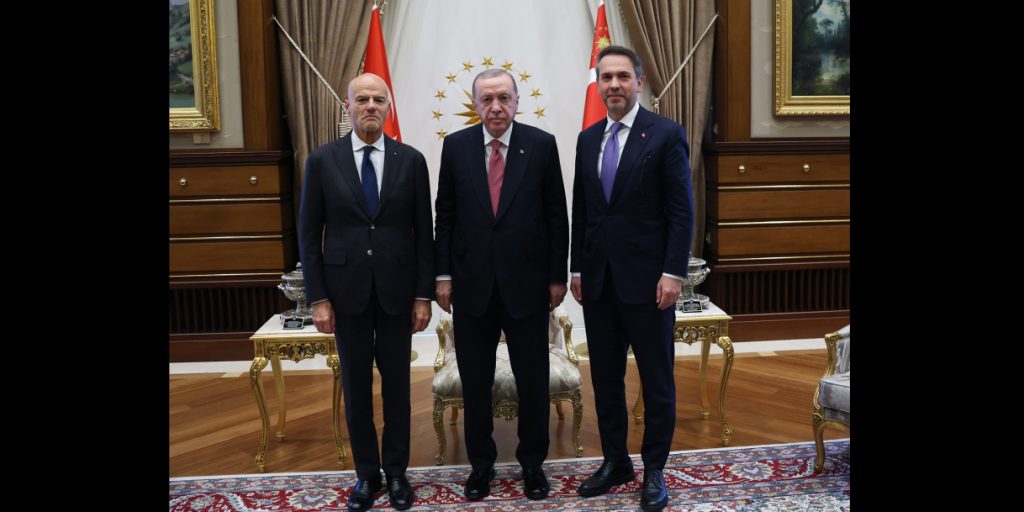 Μια μάλλον ασυνήθιστη συνάντηση – από πλευράς πρωτοκόλλου τουλάχιστον – είχαμε χθες, με τον διευθύνοντα σύμβουλο της Eni, Claudio Descalzi, να συναντάται με τον Τούρκο Πρόεδρο Ρ.Τ. Ερντογάν. Στην συνάντηση ήταν και ο υπουργός Ενέργειας, Αλπαρσλάν Μπαϊρακτάρ.