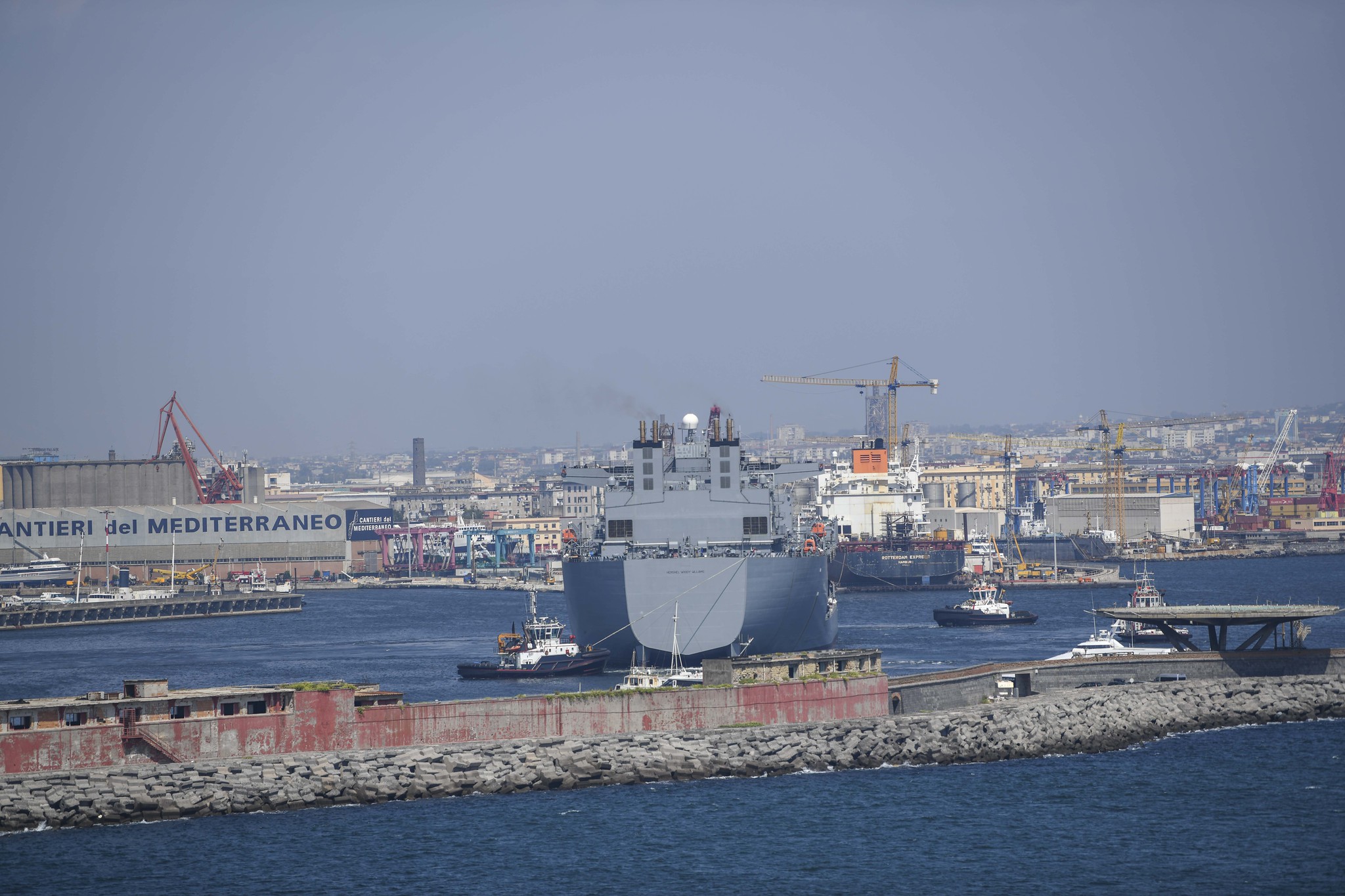 Στον Κόλπο της Σούδας βρίσκεται από νωρίς σήμερα το USS Hershel «Woody» Williams, εδώ σε φωτογραφίες κατά την αναχώρησή του την Νάπολη.
