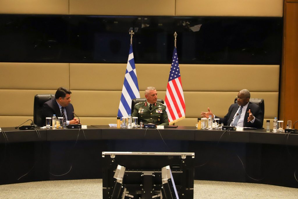 Στην συνέχεια αναφέρθηκε στη διμερή συνεργασία στον τομέα της άμυνας μεταξύ Ελλάδας – ΗΠΑ, η οποία αναπτύσσεται διαρκώς και σε όλα τα επίπεδα έπειτα και από την πρόσφατη επικαιροποίηση της Συμφωνίας Αμοιβαίας Αμυντικής Συνεργασίας (MDCA), καθώς και στην έμφαση που αποδίδουν οι Ένοπλες Δυνάμεις στην αναβάθμιση των εγκαταστάσεων και των υποδομών της Σούδας, της Αλεξανδρούπολης και του Βόλου. Έκανε ιδιαίτερη μνεία στην πρόσφατη έγκριση από την Γερουσία των ΗΠΑ του «Νόμου για την Άμυνα και την Διακοινοβουλευτική Εταιρική Σχέση ΗΠΑ-Ελλάδας», με την οποία αναγνωρίζεται η στρατηγική σημασία της Χώρας μας για την ευρύτερη περιοχή.