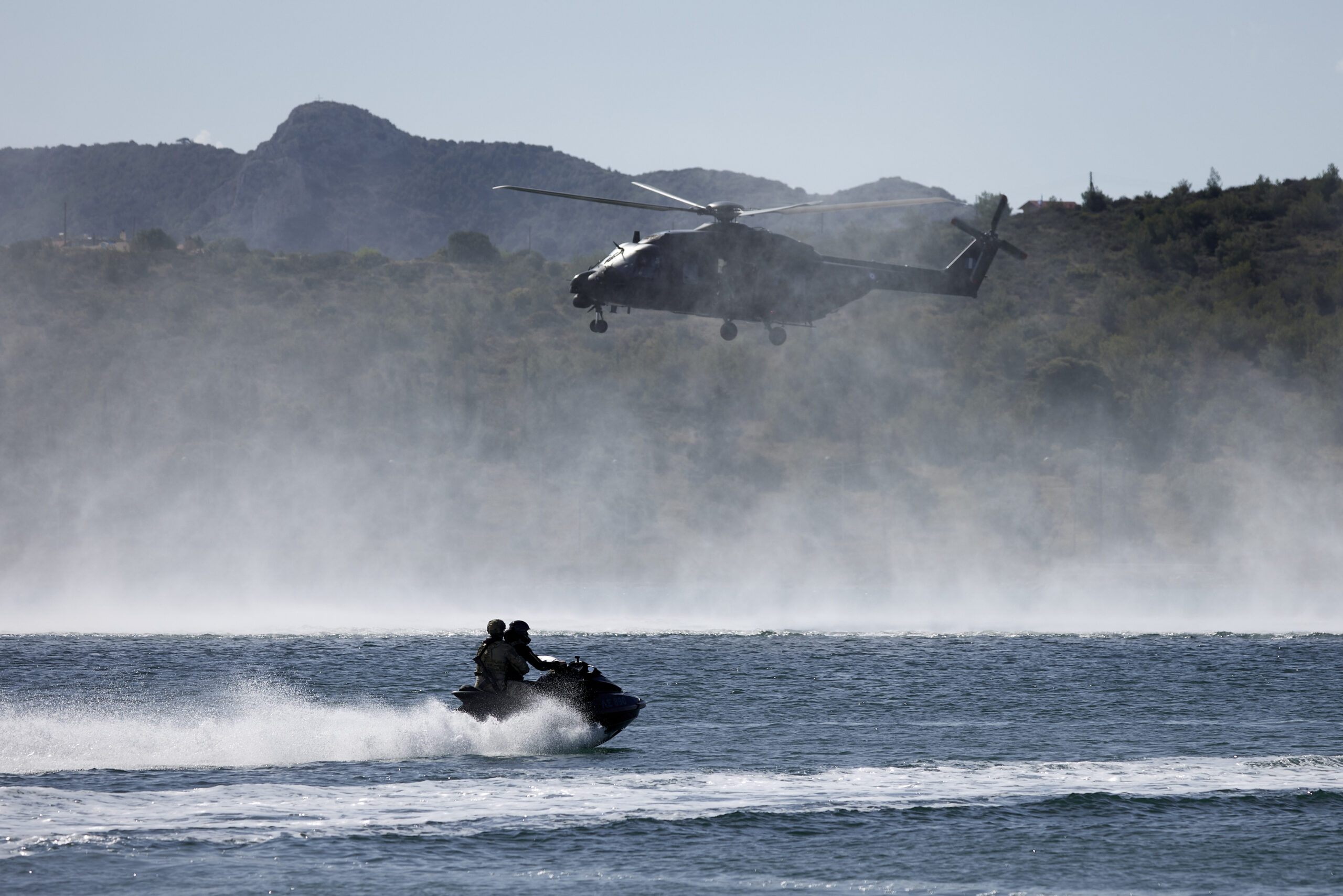 Από το Διοικητήριο του ΚΕΕΔ ο Πρωθυπουργός παρακολούθησε στρατιωτική επίδειξη με την ανάπτυξη ελικοπτέρων, εξωλέμβιων Zodiac, jet ski και αλεξιπτωτιστών με σκοπό την κατάληψη ακτής και τη διάσωση ομήρου.