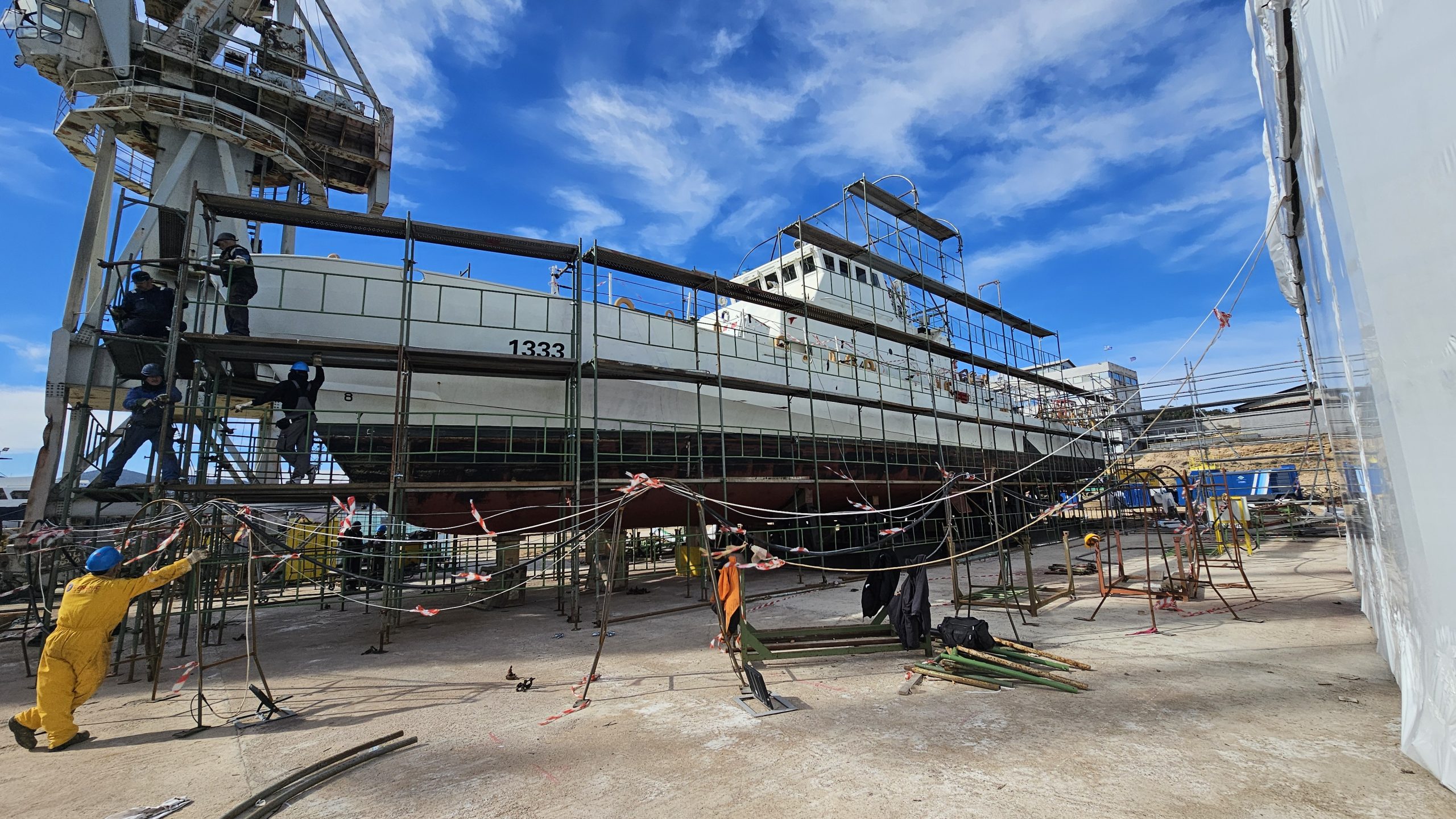 Κατά την πρόσφατη επίσκεψή μας στα Ναυπηγεία Σαλαμίνας, με αφορμή την παράδοση των πέντε block που προορίζονται για την 3η ελληνική FDI, F-603 ”Φορμίων”, είχαμε την ευκαιρία να παρακολουθήσουμε από κοντά τις εργασίες που γίνονται στα περιπολικά κλάσης Island. Τα σκάφη υποβάλλονται σε πρόγραμμα συντήρησης και αναβάθμισης του οπλισμού και εξοπλισμού τους, ώστε να αντικαταστήσουν παλαιότερα περιπολικά του Πολεμικού Ναυτικού, κλάσης ”Nasty” και ”Αντωνίου”.