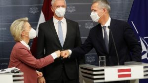 Οι επικεφαλής της ΕΕ και του ΝΑΤΟ δεσμεύτηκαν ότι θα ενισχύσουν τη συνεργασία τους απέναντι στις «υβριδικές» απειλές, με την ευκαιρία της επίσκεψής τους στη Λιθουανία, η οποία επικεντρώθηκε κυρίως στη μεταναστευτική κρίση από τη Λευκορωσία και την ενίσχυση της ρωσικής στρατιωτικής παρουσίας κοντά στην Ουκρανία.