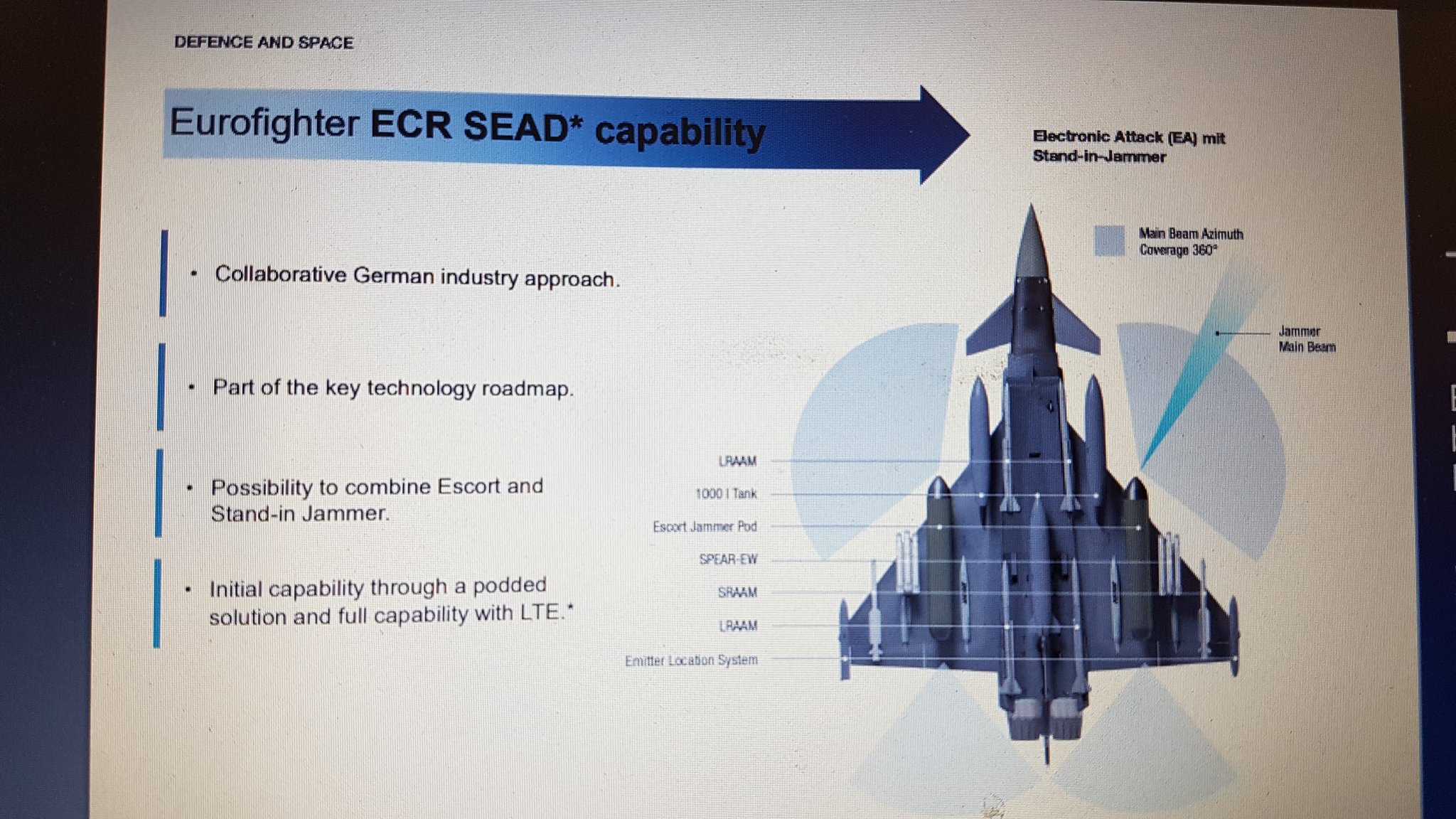 Η Airbus Defence and Space (DS) παρουσίασε χθες την πρότασή της για μια ειδικευμένη έκδοση του Eurofighter για τον ρόλο SEAD (Suppression of Enemy Air Defences) στοχεύοντας στην υιοθέτησή της προς αντικατάσταση των Tornado ECR, που έχουν σήμερα αυτό το ρόλο με την Luftwaffe και την Aeronautica Militare.