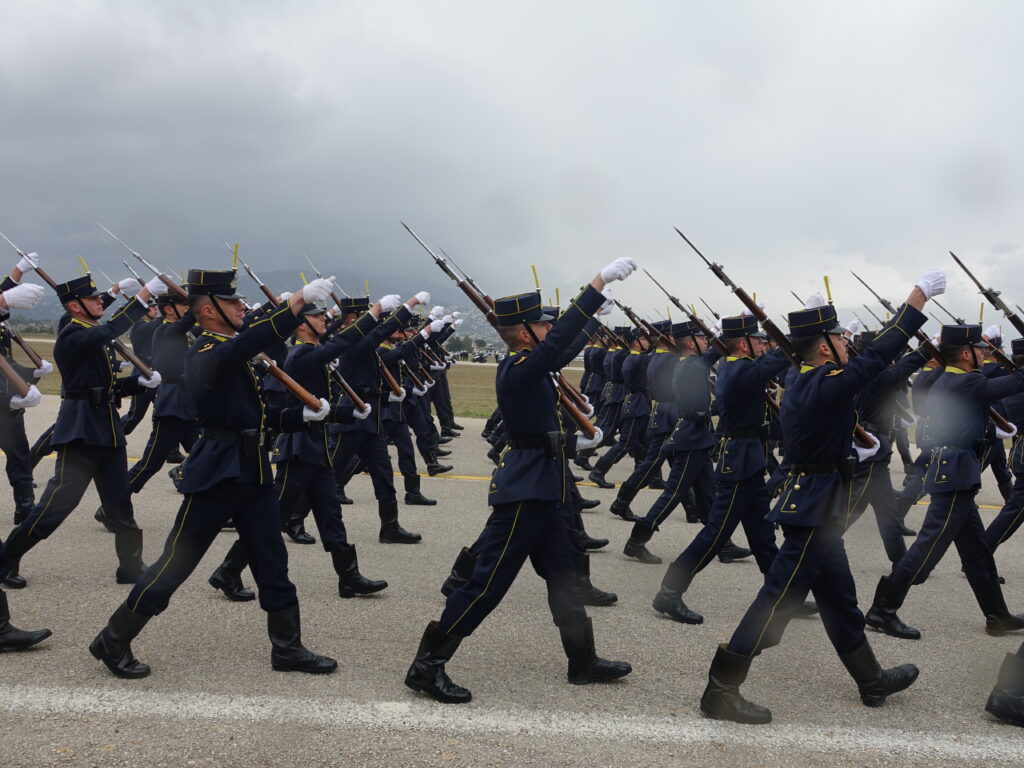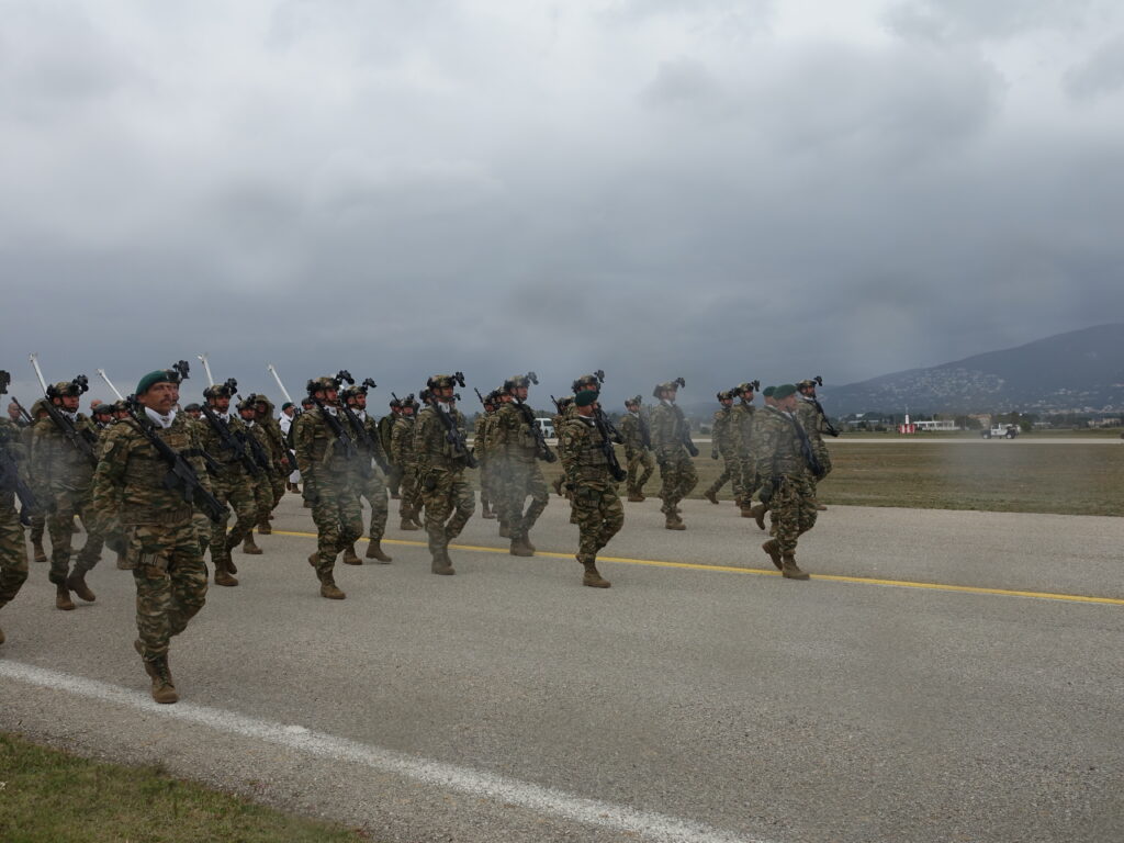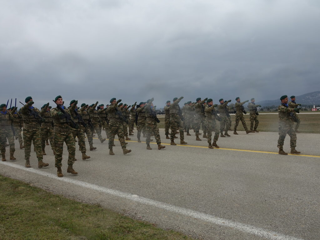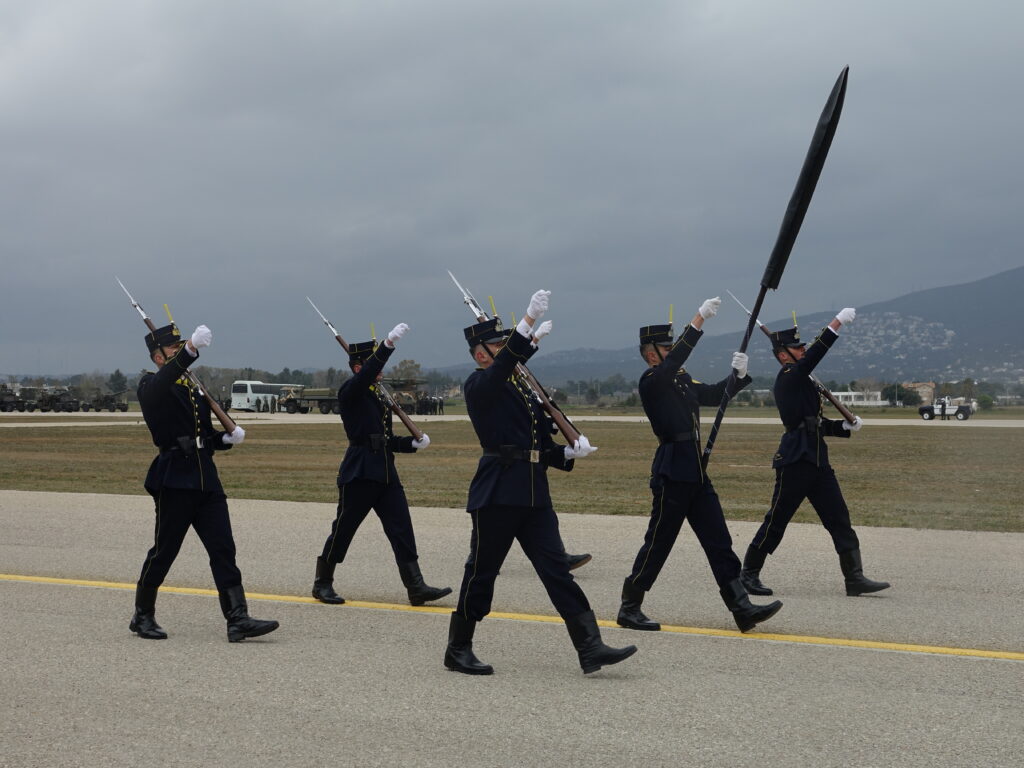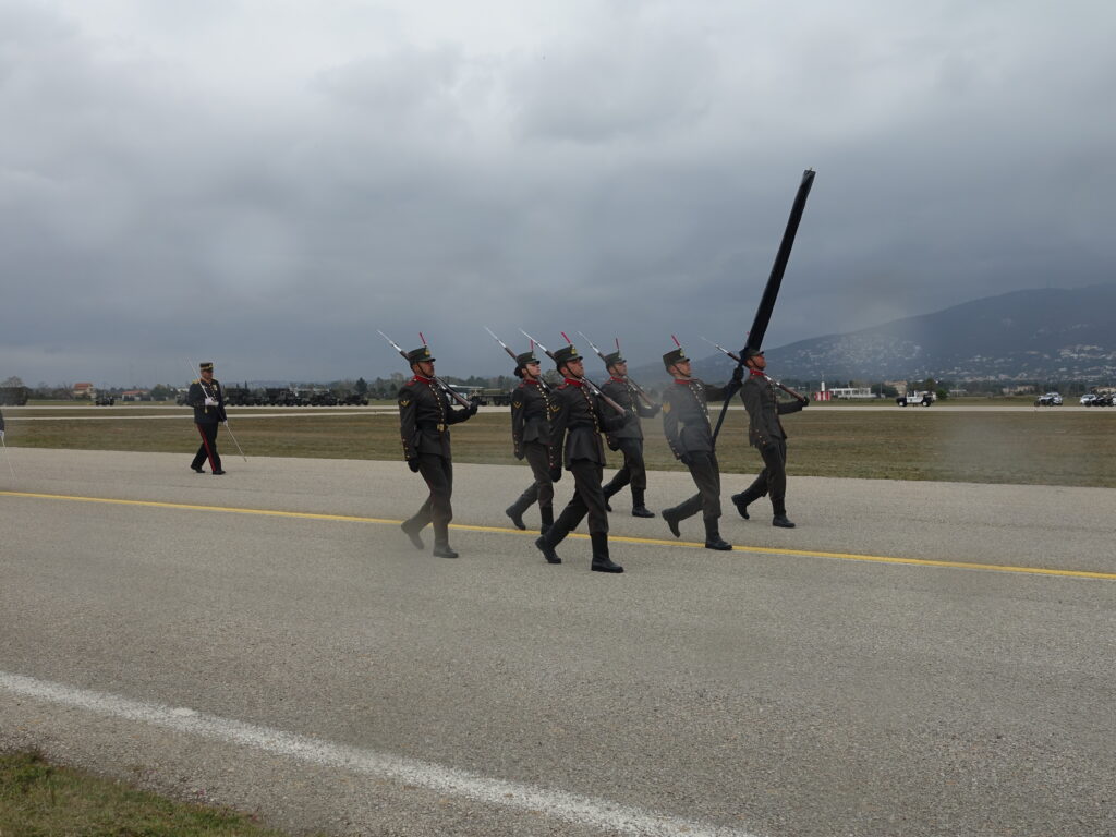 Η ΠΤΗΣΗ παρευρέθη προχθές στην αεροπορική βάση της Δεκέλειας (Τατόι), όπου πραγματοποιήθηκε η γενική πρόβα των πεζοπόρων τμημάτων, που θα συμμετάσχουν στη φετινή στρατιωτική παρέλαση για την εθνική επέτειο της 25ης Μαρτίου 1821. Η πρόβα διεξήχθη υπό αντίξοες καιρικές συνθήκες, με ισχυρό αέρα, βροχή και χαμηλές θερμοκρασίες, ωστόσο τα τμήματα κατάφεραν να παρουσιάσουν απόλυτο συγχρονισμό και επαγγελματισμό, αποδεικνύοντας για ακόμα μία φορά το υψηλό φρόνημα και την αφοσίωσή τους.