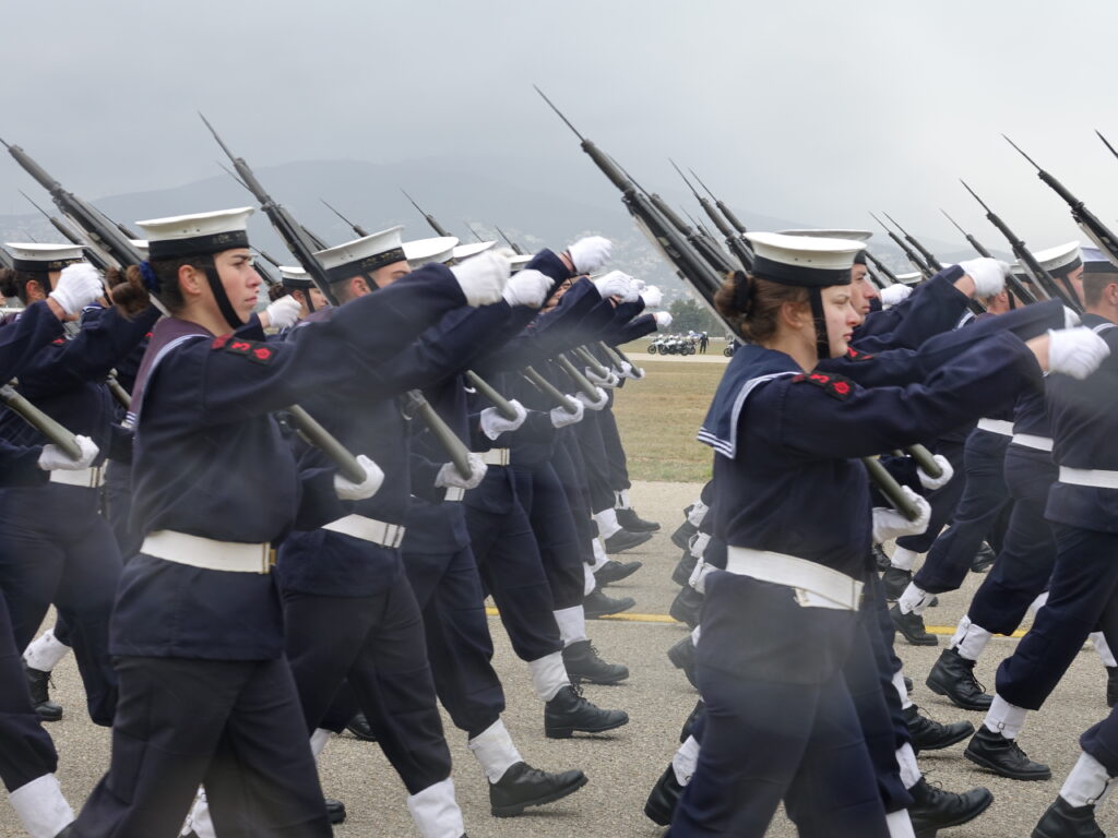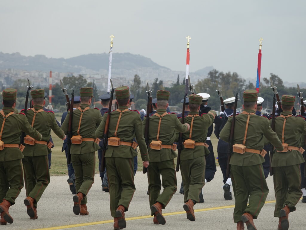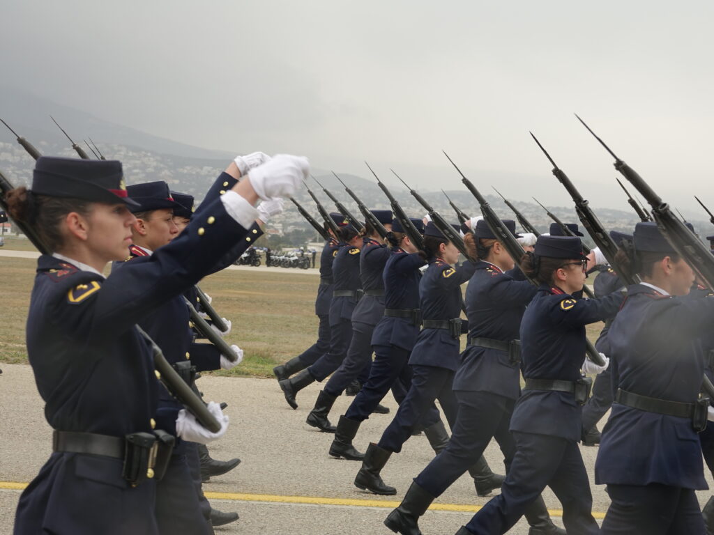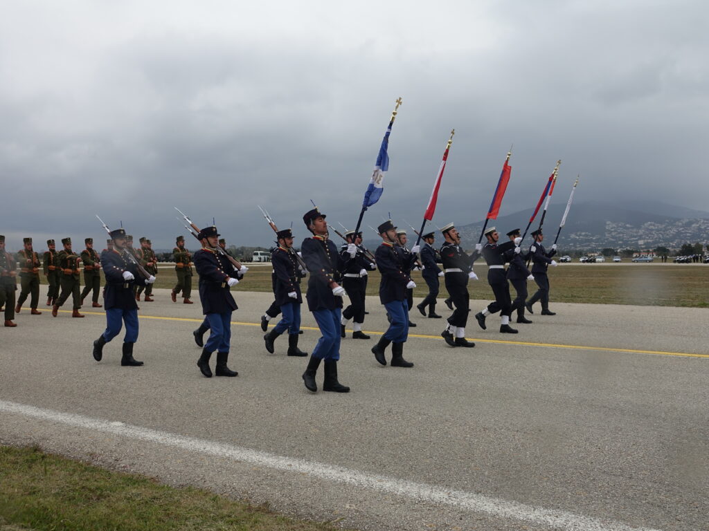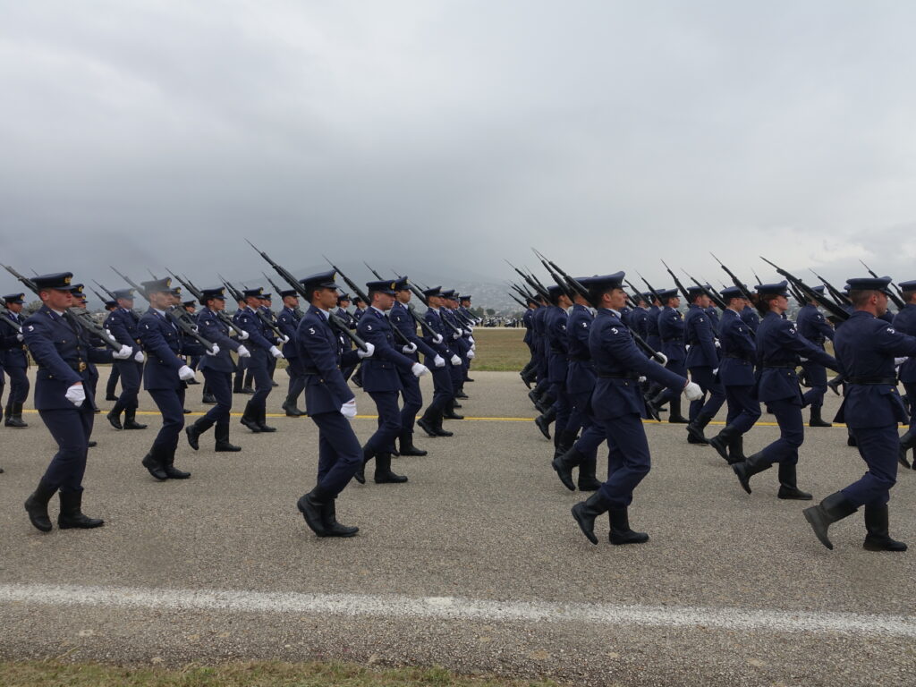Η ΠΤΗΣΗ παρευρέθη προχθές στην αεροπορική βάση της Δεκέλειας (Τατόι), όπου πραγματοποιήθηκε η γενική πρόβα των πεζοπόρων τμημάτων, που θα συμμετάσχουν στη φετινή στρατιωτική παρέλαση για την εθνική επέτειο της 25ης Μαρτίου 1821. Η πρόβα διεξήχθη υπό αντίξοες καιρικές συνθήκες, με ισχυρό αέρα, βροχή και χαμηλές θερμοκρασίες, ωστόσο τα τμήματα κατάφεραν να παρουσιάσουν απόλυτο συγχρονισμό και επαγγελματισμό, αποδεικνύοντας για ακόμα μία φορά το υψηλό φρόνημα και την αφοσίωσή τους.