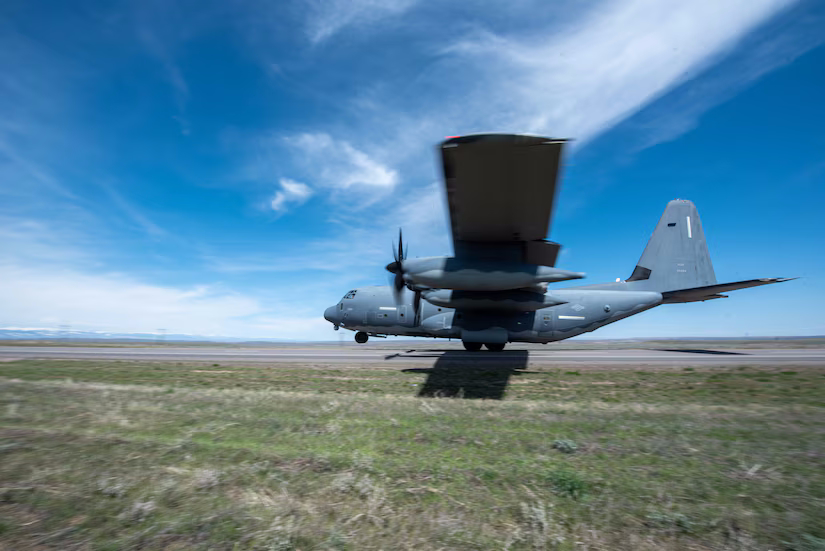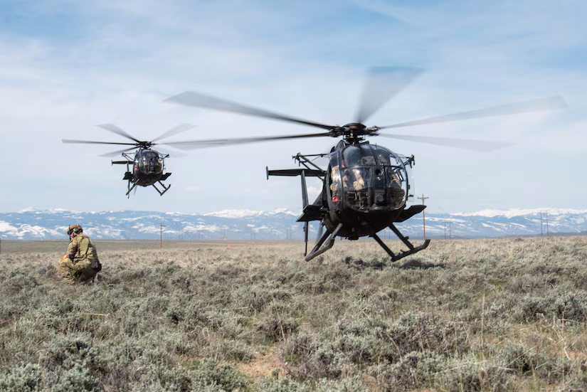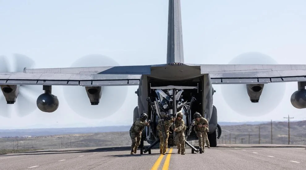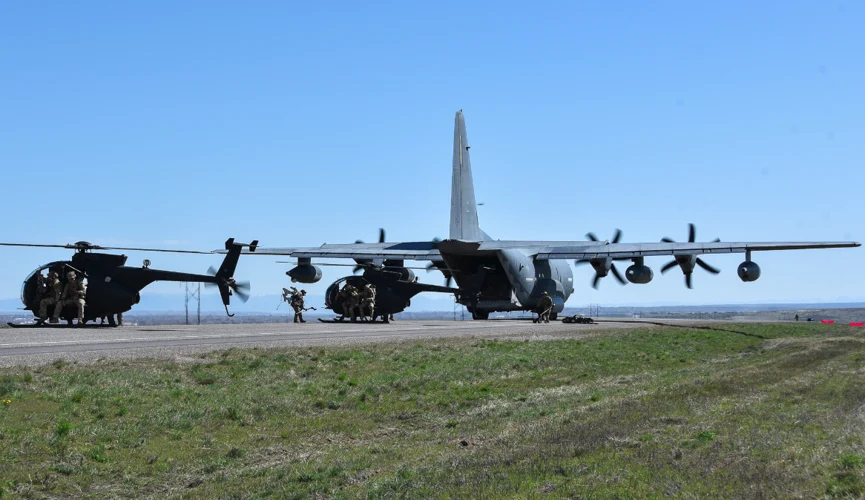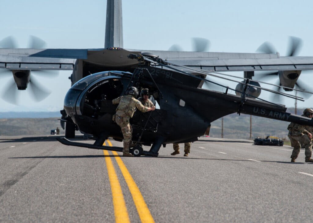 Στο σημείο προσγειώθηκε MC-130J που μετέφερε δύο από τα μικρά ελικόπτερα της SOC (Special Operations Command), τα οποία με το αναδιπλούμενο στροφείο τους χωρούν μέσα στην άτρακτο του Hercules II και είναι έτοιμα για πτήση αμέσως μετά την εκφόρτωση.