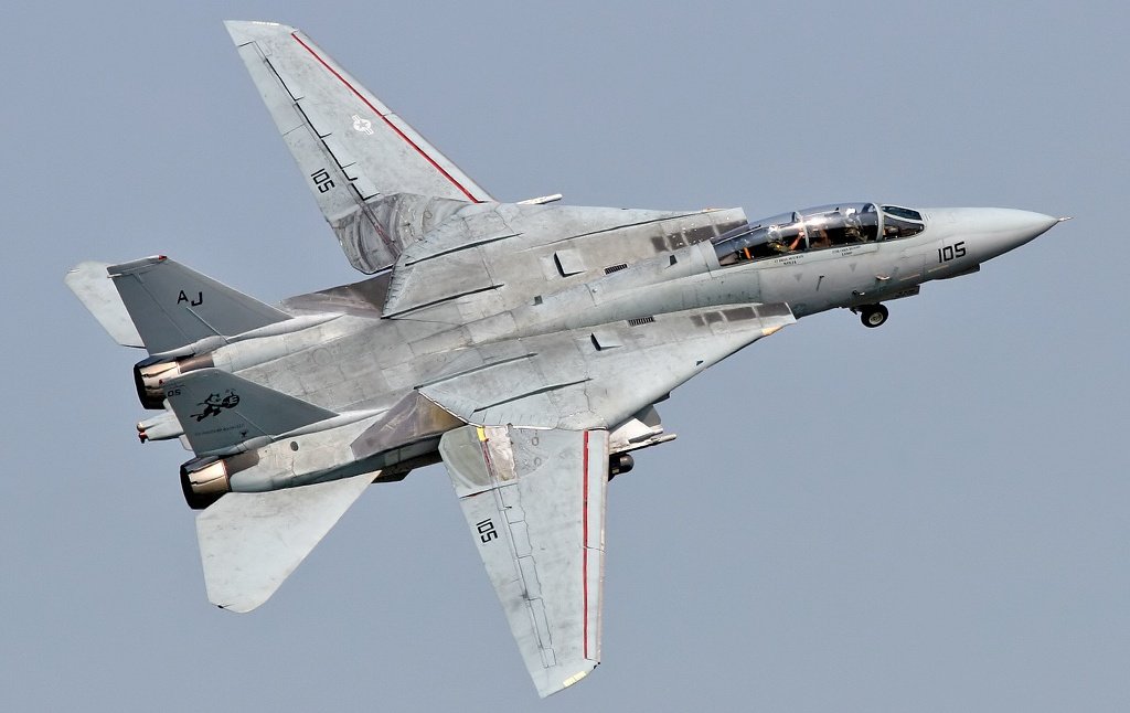 Το F-14 Tomcat, που μπήκε σε υπηρεσία το 1974, υλοποίησε αυτή την ιδέα με τρόπο που δεν είχε προηγούμενο. Οι πτέρυγες του μπορούσαν να κινούνται σε οποιαδήποτε γωνία από 20° (πλήρως εκτεταμένες) έως 68° (πλήρης σύμπτυξη), με συνεχή μετάβαση, επιτρέποντας βέλτιστη αεροδυναμική απόδοση σε κάθε φάση της πτήσης. Αυτό επιτυγχανόταν χάρη στον Κεντρικό Υπολογιστή Αεροδυναμικών Δεδομένων (Central Air Data Computer – CADC), που ανέπτυξε η Garrett AiResearch,  τεχνολογικό θαύμα για την εποχή του.