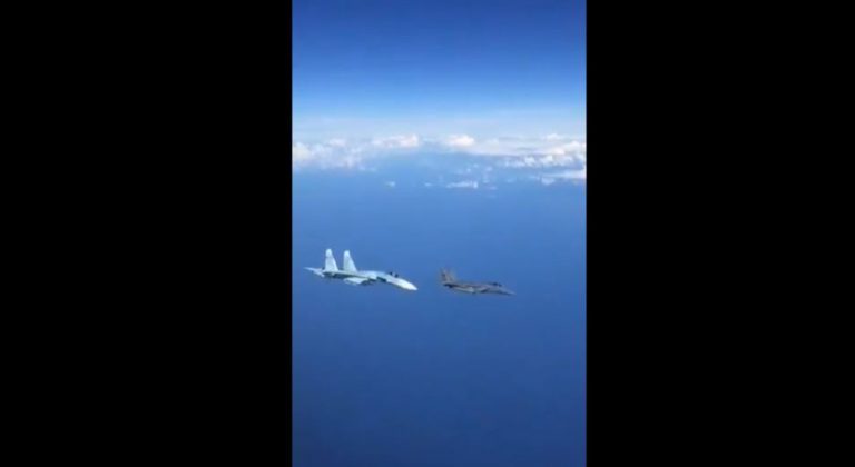 Θραύση στα ρωσικά κοινωνικά δίκτυα κάνει το παρακάτω βίντεο που απεικονίζει ένα ρωσικό Su-27 να αναχαιτίζει ένα αμερικανικό F-15, (υποτίθεται) κάπου στη Θάλασσα της Ιαπωνίας, ή κατ’ άλλες πηγές, κάπου στη Βαλτική.