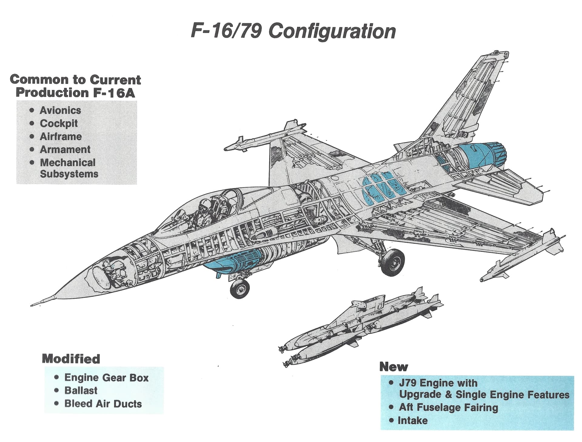 Έτσι η General Dynamics, κατασκευαστής του F-16, συνεργάστηκε με τη General Electric για να προτείνει μια τροποποιημένη εκδοχή του F-16A/B, αλλά με τον παλαιότερο turbojet κινητήρα J79-GE-119, που είχε ήδη χρησιμοποιηθεί ευρέως σε αεροσκάφη όπως το F-4 Phantom και το F-104 Starfighter. Αυτή η επιλογή δεν ήταν τυχαία, καθώς ο J79 ήταν φθηνός, ευρέως διαθέσιμος σε συμμαχικές χώρες και εξασφάλιζε ότι το μαχητικό θα παρέμενε τεχνολογικά κατώτερο από τα αμερικανικά F-16, αποτρέποντας πιθανή διαρροή μυστικών του προηγμένου κινητήρα F100, στην τότε ΕΣΣΔ.