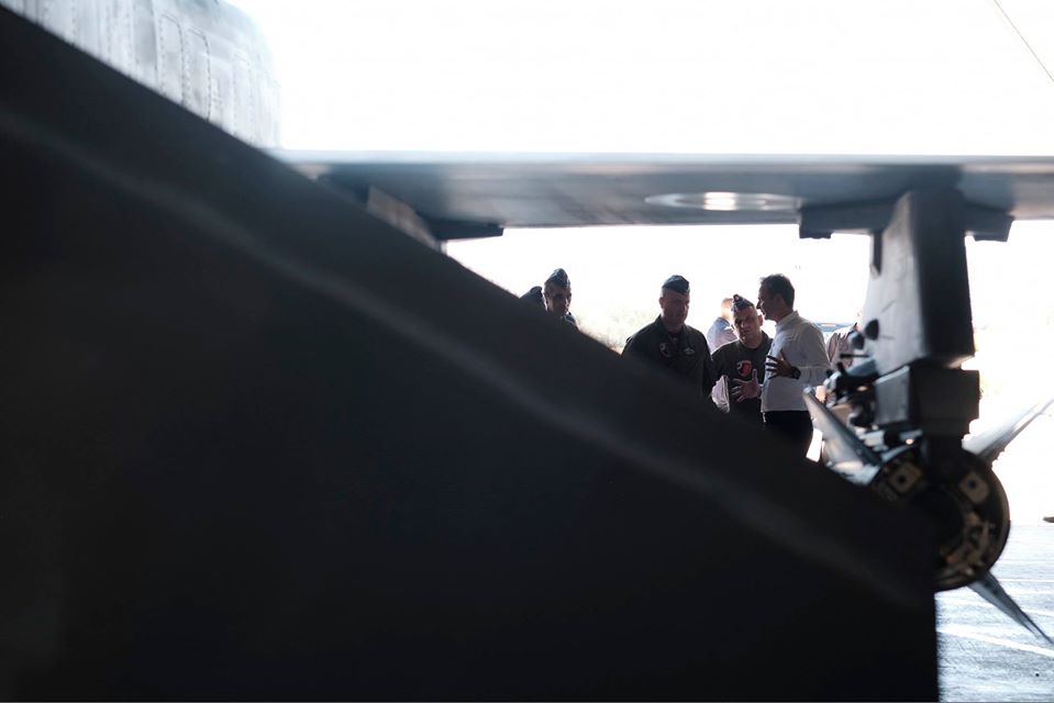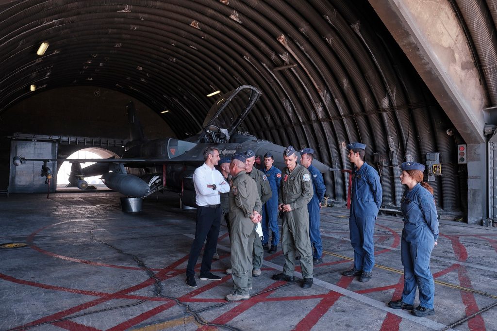 Προφανώς, σε επίσκεψη σε κάποιο άλλο shelter της 115 ΠΜ, ο πρωθυπουργός βρέθηκε μπροστά σε άλλο φορτωμένο F-16C, αλλά αυτή τη φορά δεν ήταν για αποστολές CAP, αλλά είχε διπλή αποστολή. Είχε λοιπόν φορτωμένους 2 Χ ΑΙΜ-120C7, 2 X AIM-2000 IRIS-T αλλά και 2 X AGM-65G. Ο AGM-65G είναι πύραυλος αέρος-εδάφους, αλλά έχει τη δυνατότητα να πλήττει και “μεγάλους” στόχους, όπως πλοία, ενώ η κεφαλή των 136 κιλών μπορεί να διατρήσει το στόχο πριν εκραγεί εντός του. Αντιλαμβανόμαστε πως τα 136 κιλά του Maverick δεν είναι τα 221 κιλά του AGM-84 Harpoon, αλλά σίγουρα είναι περισσότερα από τα 120 του AGM-119 Penguin Mk2!