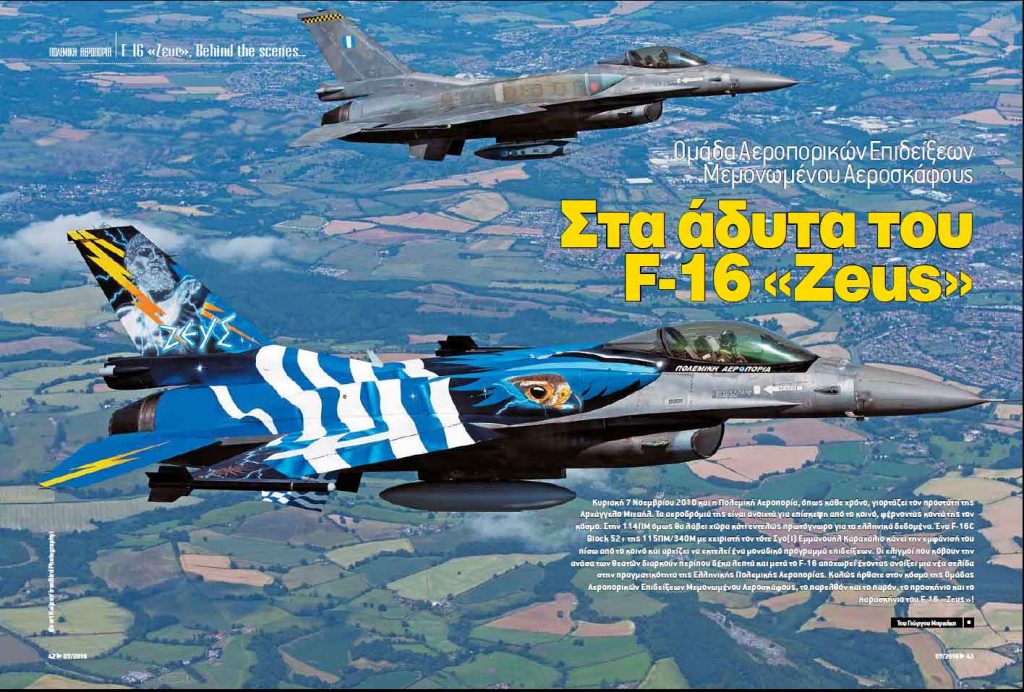 Την Κυριακή 7 Νοεμβρίου 2010 άνοιξε μια καινούργια σελίδα για την Ελληνική Πολεμική Αεροπορία όταν στην 114ΠΜ ένα F-16C Block 52+ της 115ΠΜ/340Μ με χειριστή τον τότε Σγο(Ι) Εμμανουήλ Καραχάλιο πραγματοποίησε την πρώτη εμφάνιση της Ομάδας Αεροπορικών Επιδείξεων Μεμονωμένου Αεροσκάφους, του F-16 «Ζευς»! Από τότε η Ομάδα είχε πολλές και εξαιρετικά επιτυχημένες επιδείξεις «εντός και εκτός των Τειχών». Βρεθήκαμε –κατ’ αποκλειστικότητα- στην εκπαιδευτική περίοδο προετοιμασίας της Ομάδας στο πλαίσιο αλλαγής προγράμματος και συνολικής ανανέωσης για την σαιζόν που ήδη διανύουμε.
