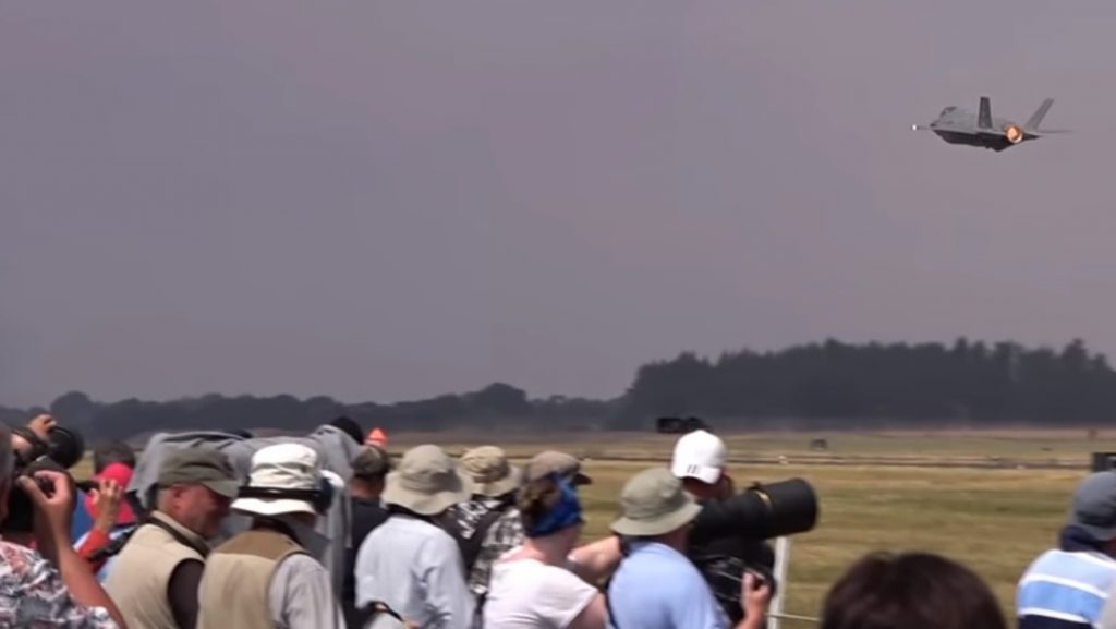 Αεροσκάφος F-35 πραγματοποίησε αεροπορική επίδειξη στα πλαίσια της διεθνούς έκθεσης Royal International Air Tatto (RIAT). Το F-35 δεν έχει συμμετάσχει σε πολλές αεροπορικές επιδείξεις μέχρι στιγμής, ενώ ειδικά εκτός ΗΠΑ οι εμφανίσεις του μετριούνται στα δάχτυλα.