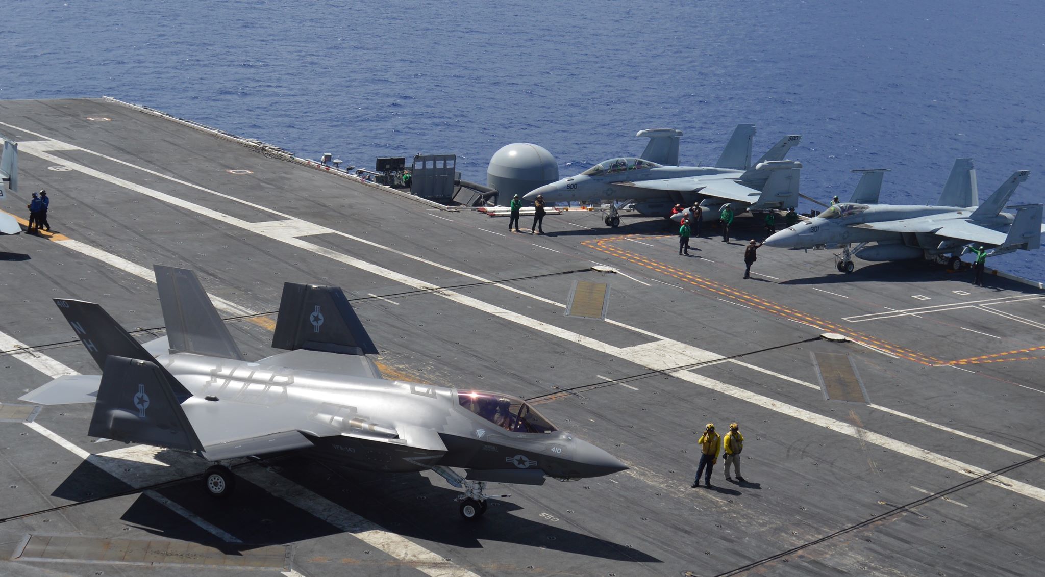 Έτσι λοιπόν για πρώτη φορά, τα F-35C απονηώθηκαν, προσνηώθηκαν, και κινούνταν επί του καταστρώματος δίπλα στα υπάρχοντα F-18E/F Super Hornet, EA-18G Growler και E-2D Advanced Hawkeye. Στις προηγούμενες δοκιμές, τα F-35C επιχειρούσαν μόνα τους σε άδειο κατάστρωμα και με ελεγχόμενες συνθήκες.