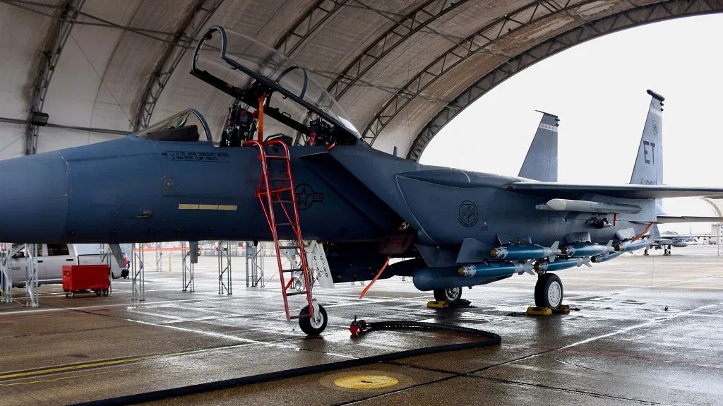 Ξέρουμε πως ο γερόλυκος των μαχητικών, το F-15, έχει μια τεράστια μεταφορική ικανότητα, αλλά στην Αμερικανική Αεροπορία είπαν να το φθάσουν στα άκρα. Έτσι πριν λίγες μέρες, στη βάση Englin, το 85ο Σμήνος Δοκιμών και Αξιολόγησης, κατάφερε να φορτώσει 15 βόμβες JDAM σε ένα F-15E Strike Eagle.