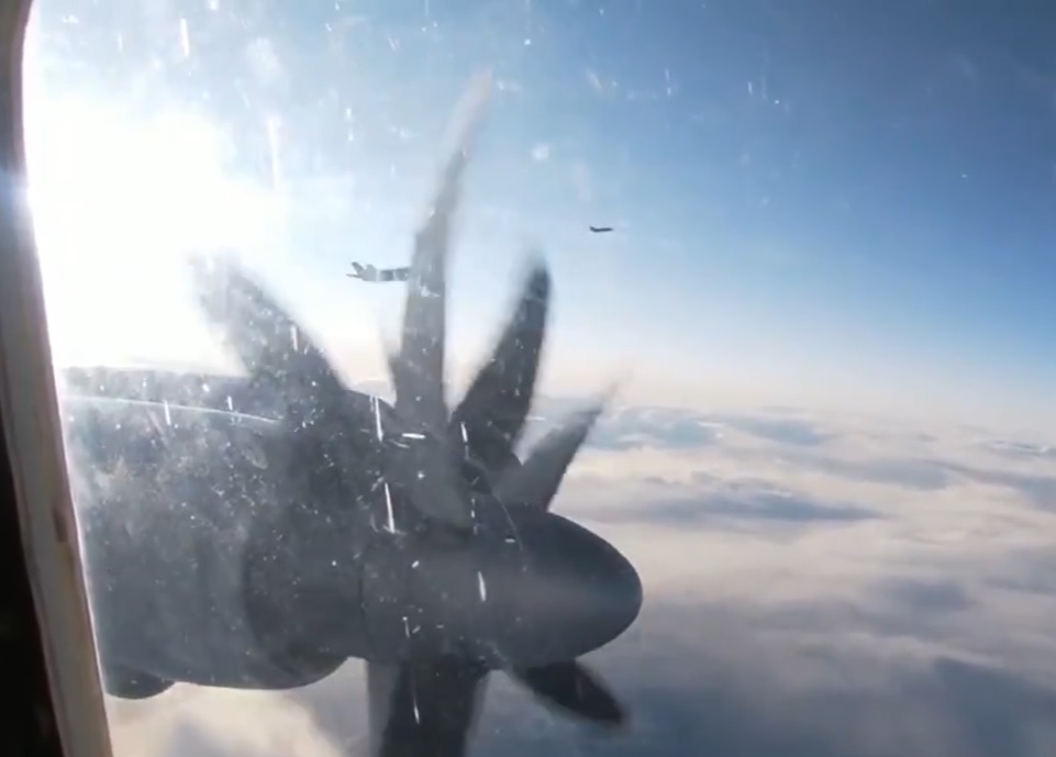 Mια συνάντηση αεροσκαφών από διαφορετικούς αιώνες: νορβηγικά F-35A αναχαίτισαν αεροσκάφος ναυτικής συνεργασίας μεγάλης εμβέλειας/ανθυποβρυχιακού πολέμου Tu-142MK και ένα ‘relay’ Tu-142MRΜ Orel του Βόρειου Στόλου, συνοδευόμενα σε στυλ COMAO από MiG-31 Foxhound της Ρωσικής Ναυτικής Αεροπορίας με οπλικό φορτίο βλήματα αέρος-αέρος R-33 (AA-9 ‘Amos’).